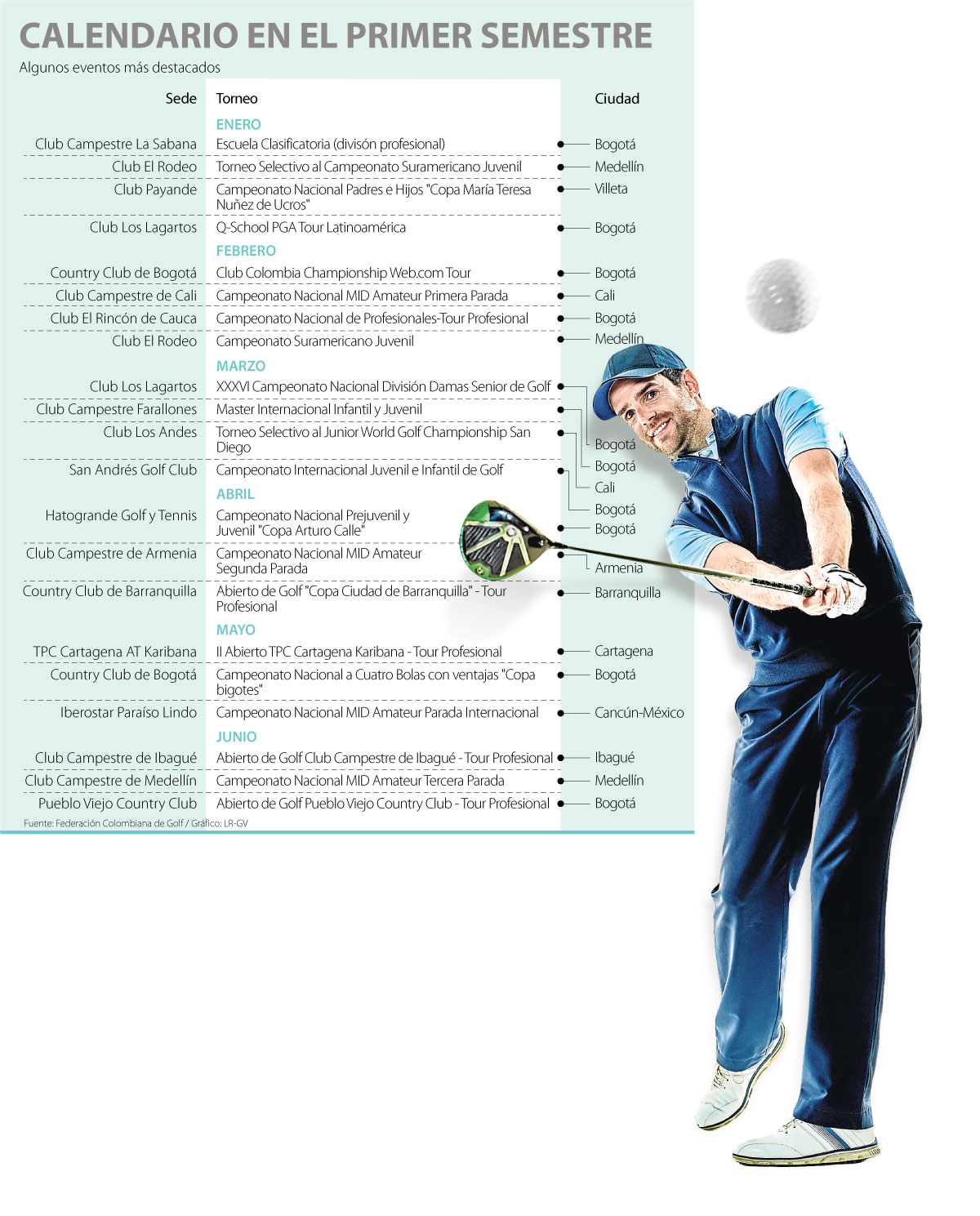 Sumando los esfuerzos que hace la Federación Colombiana de Golf, los clubes y los entes internacionales federados, en el territorio nacional se hacen aproximadamente entre 60 y 70 torneos al año de esta disciplina deportiva. Tan solo en el primer semestre, el calendario 2018 que publica Fedegolf en su página web suma 34 torneos entre profesionales y amateur, de los cuales LR presenta los 20 más importantes.