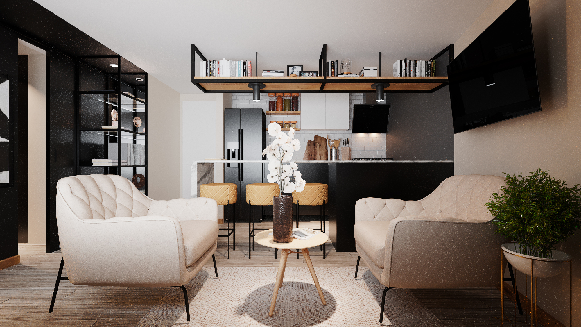 Este toque de lujo y elegancia se logra con el color negro y tonos neutros, e invita a atreverse a usarlo sin temor a que se vea más pequeño el espacio, ya que esto no sucederá si se puede equilibrar con un balance de colores en los materiales del mobiliario, como la madera de matices claros.