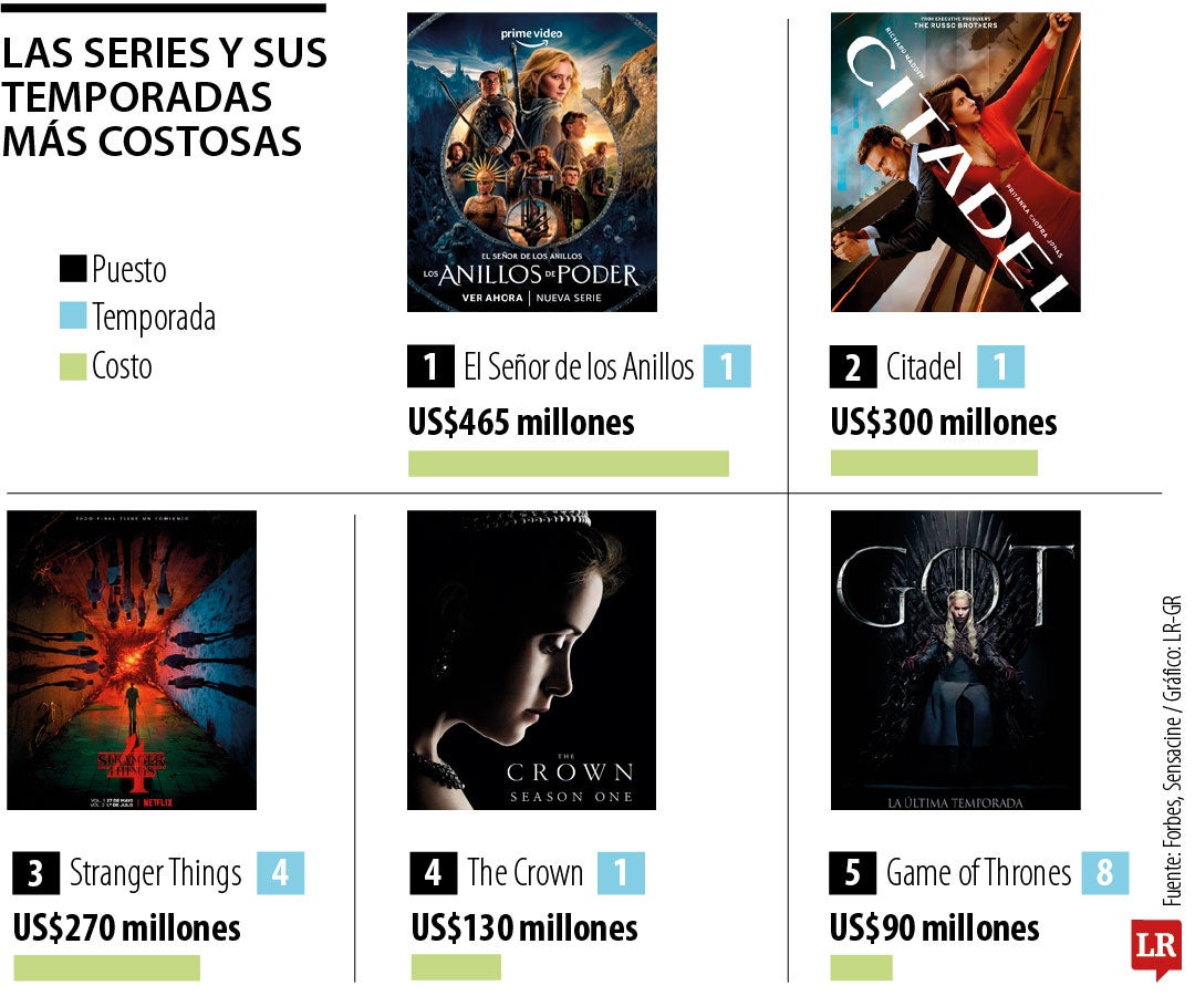 Han costado entre US$465 y US$90 millones, la lista incluye a The Crown, Game of Thrones, El Señor de los Anillos y Stranger Things