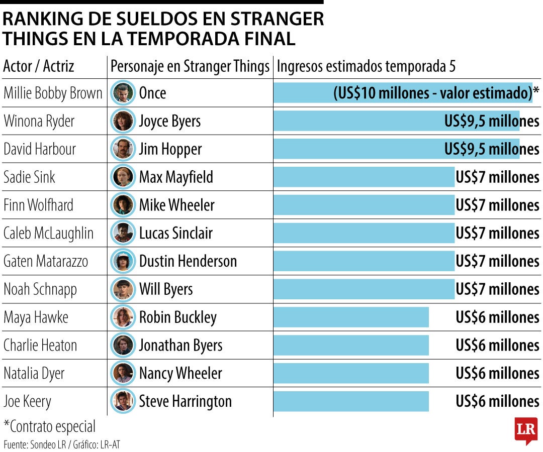 La actriz que interpreta a Joyce Byers y el actor que da vida a Jim Hopper habrían recibido US$9 y US$9,5 millones cada uno por su participación en la temporada final