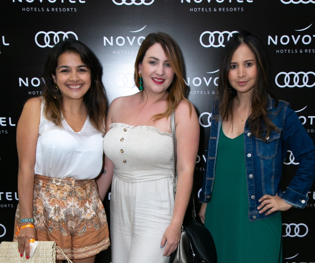 Camila Villamil, influenciadora; Yoendry Prieto, fotógrafo; y Natalia Echeverry, invitada al evento realizado por Audi y Novotel.