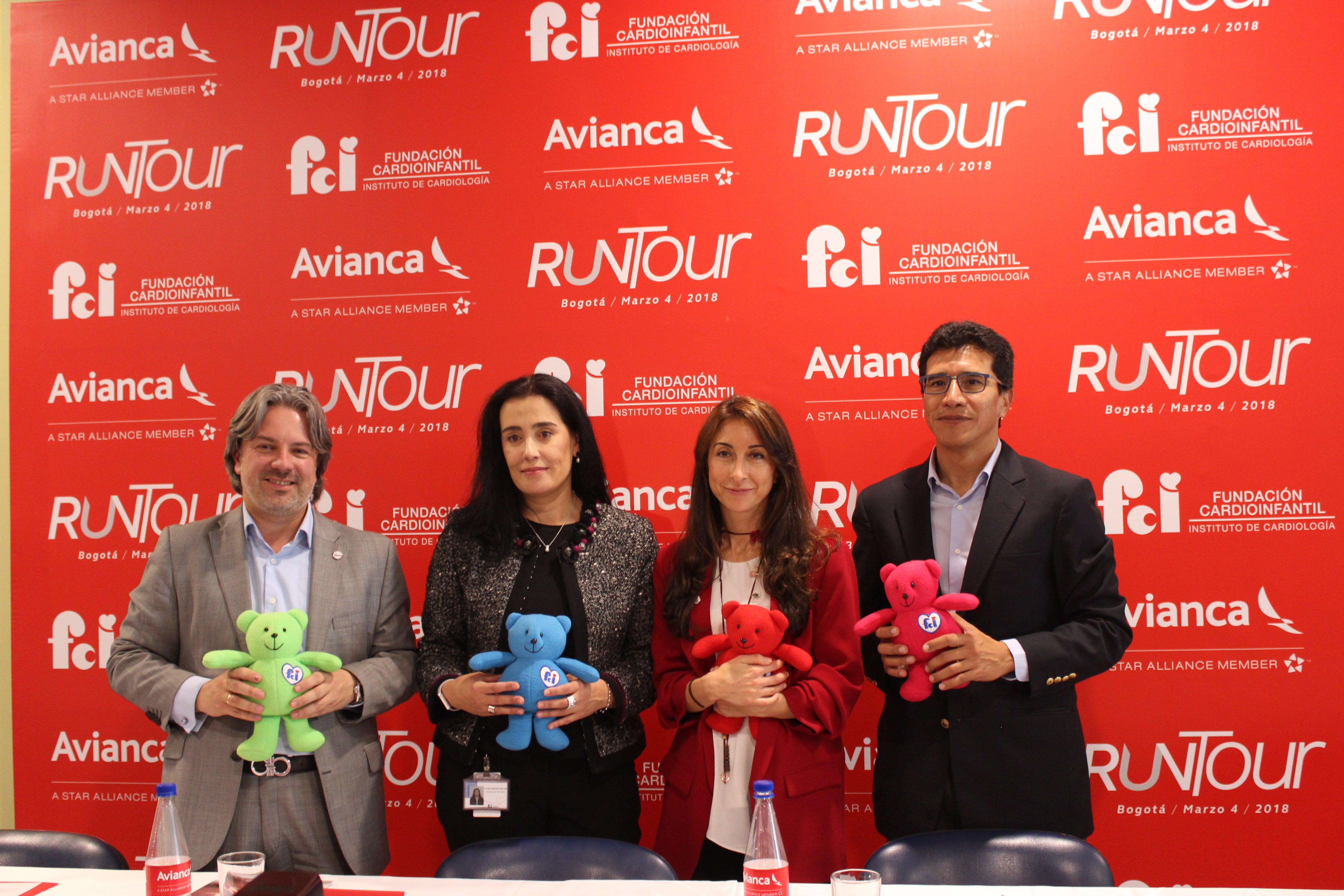 John Karakatsianis, dir. Ciudadanía Corporativa Avianca; Gloria Molina, representante Fundación CardioInfantil; Silvia Mosquera, vicepte. Ventas, Mercadeo e Ingresos Avianca; y Juan Carlos González, gte. Ergofitness.