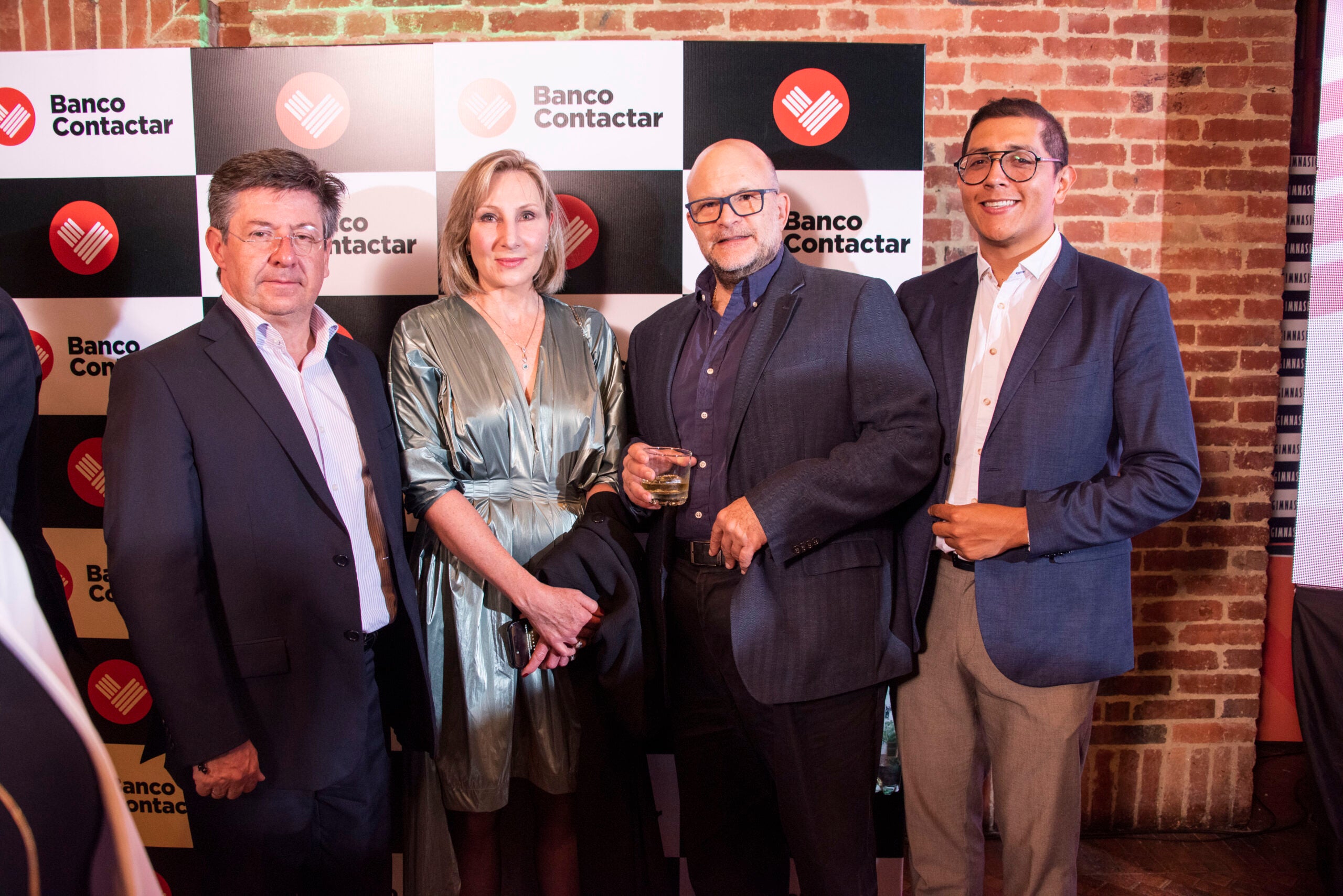 Paulo Emilio Rivas Ortiz, presidente de Banco Contactar; Diego Guzmán, miembro de Junta Directiva de Banco Contactar; María Clara Hoyos, presidente de Asomicrofinanzas, y Andrés Abella, presidente de la Junta Directiva de Banco Contactar.