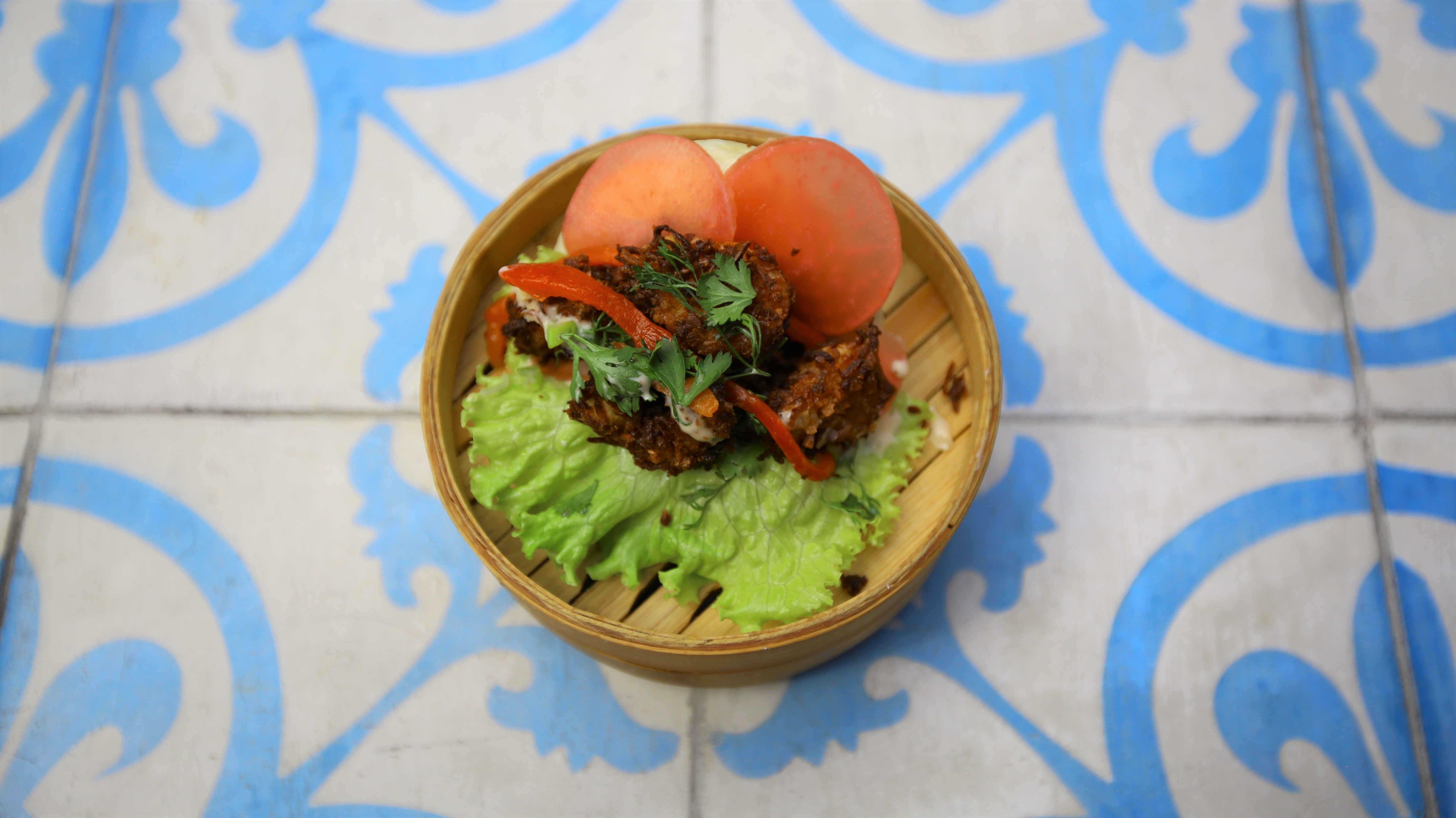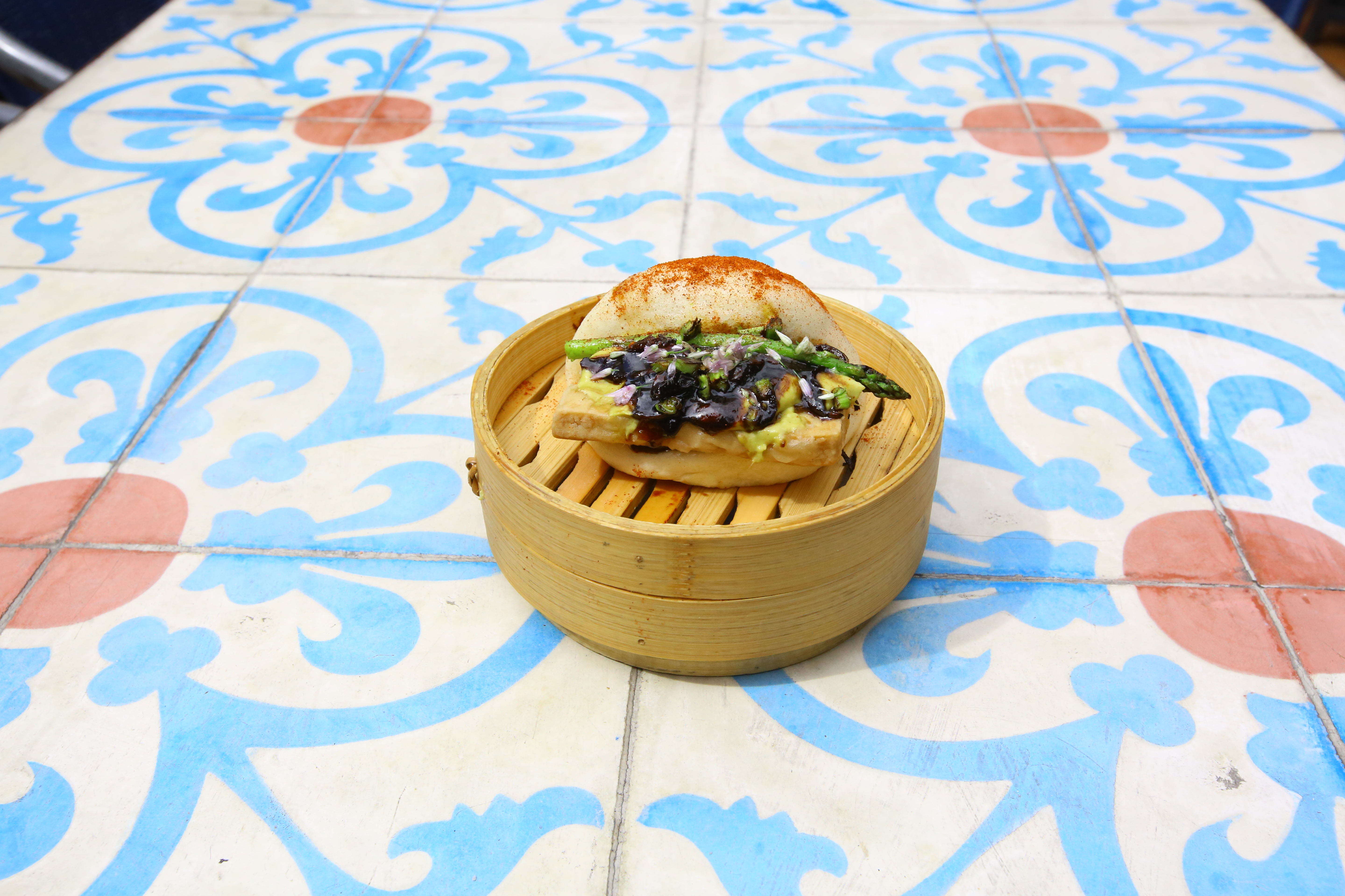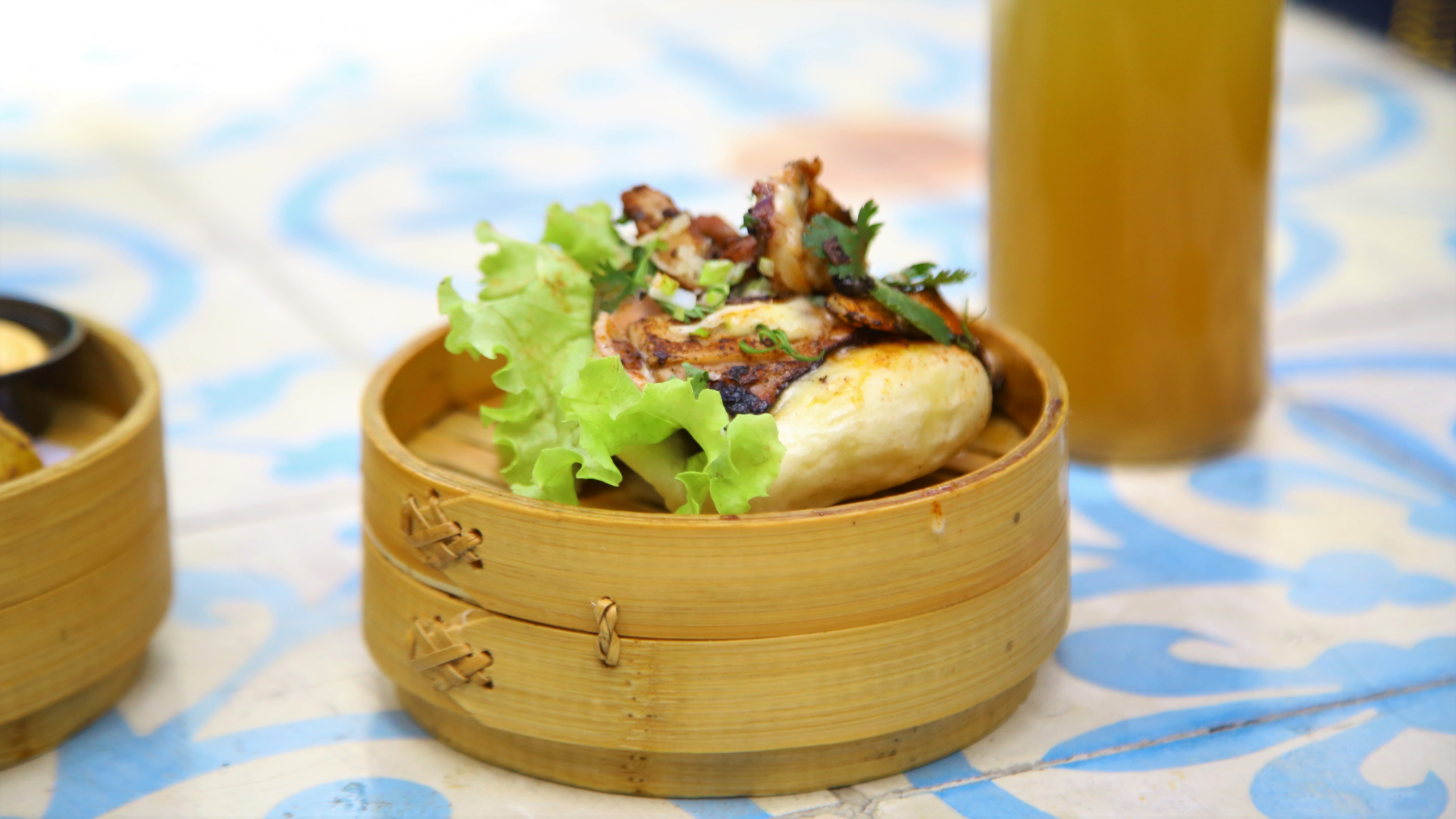 El concepto consta de un pan hecho al vapor con base de trigo y leche que se caracteriza por ser muy blanco, esponjoso y porque no tiene corteza. Luego de tener la masa, en la cocina se le agrega una proteína, una verdura y una salsa.