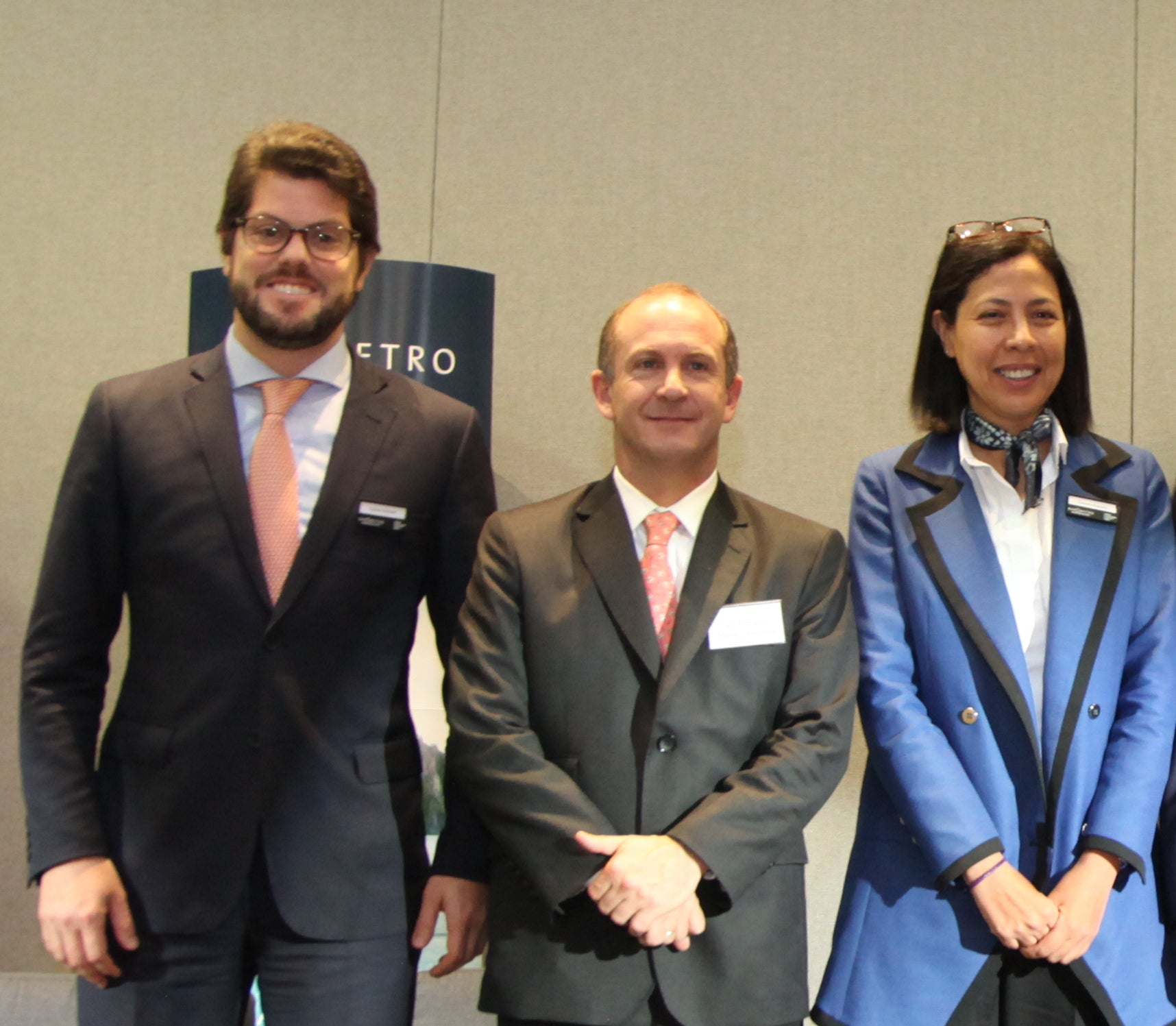 Rafael Boisset, socio de PPU Perú; en compañía de Luis Fernando María, country manager de Enaex; y Claudia Barrero, socia de PPU, durante la presentación del Barómetro Multilatinas del bufete PPU.