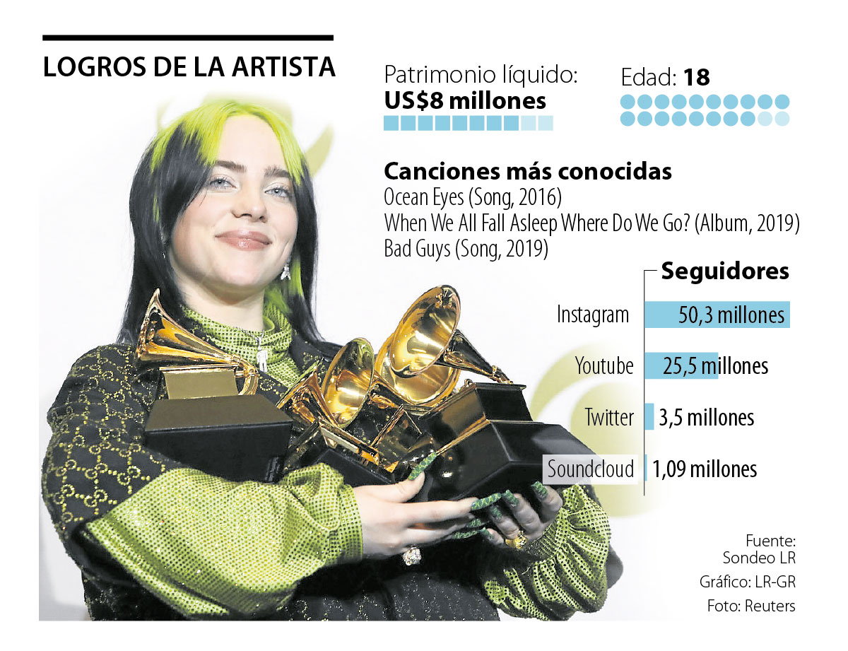 Para los expertos esto es solo un inicio de la que ya es reconocida como el ícono de la ‘generación Z’. Las canciones de la artista suman más de 1.000 reproducciones en Spotify y al mes en esta plataforma tiene más de 54,8 millones de oyentes. Con estas cifras también fue la primera artista nacida en el siglo XXI en llegar al número uno de Billboard.