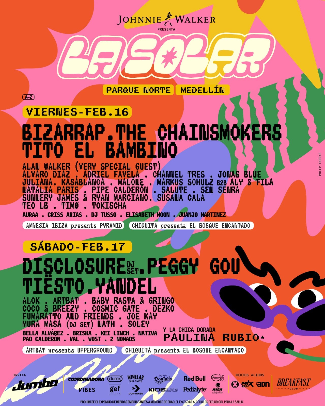 El festival La Solar, organizado por Breakfast Club, anunció el line up oficial de sus dos jornadas para la edición que llega en 2024 al Parque Norte de Medellín, el 16 y 17 de febrero. Se dio a conocer además que este contará con más de 60 actos tanto nacionales como internacionales.