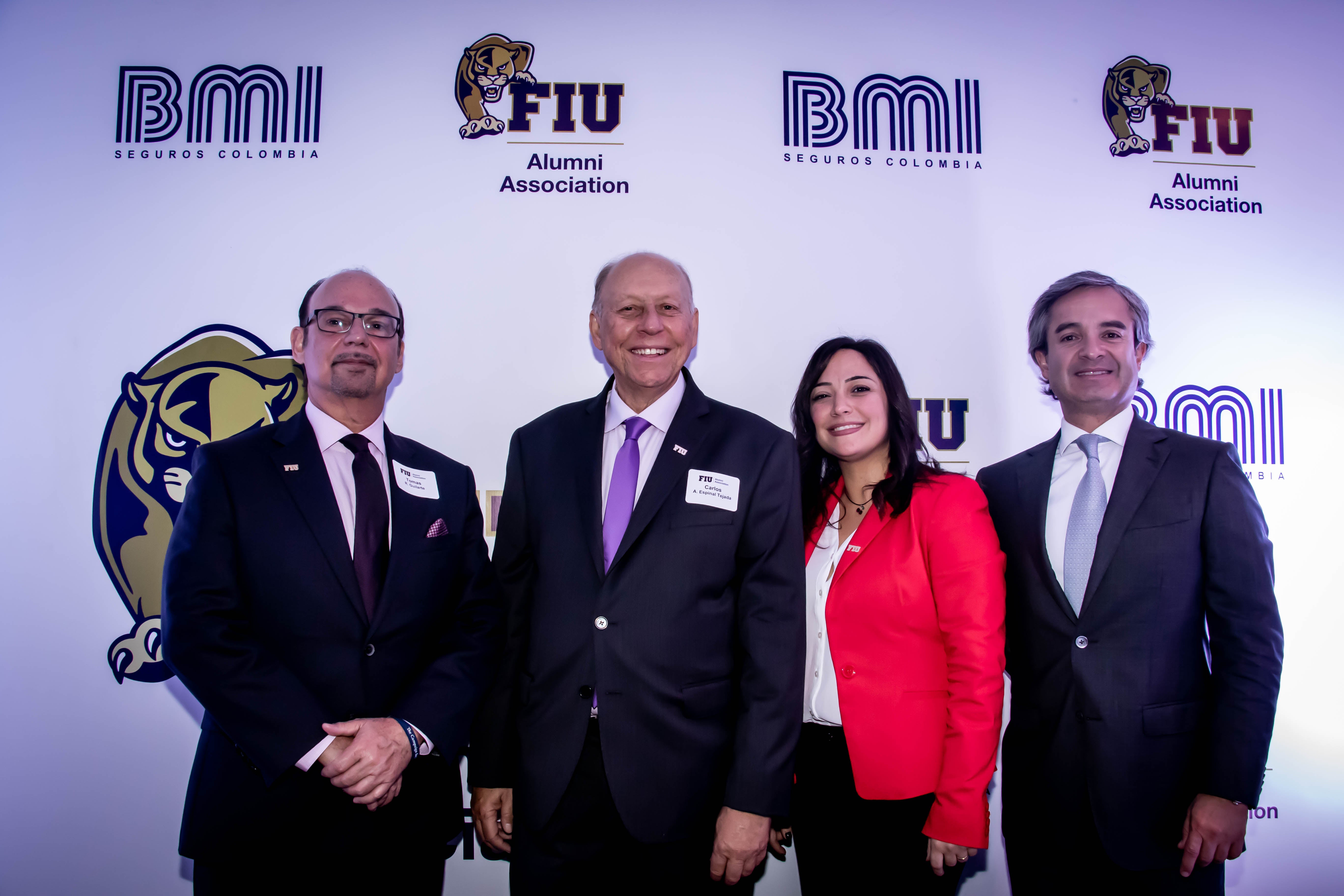 Tomas Guilarte, decano de la Escuela de Salud Pública de Florida International University (FIU); Carlos Espinal Tejada, director de la Escuela de Salud Pública FIU; Diana Azzam, profesora de la Escuela de Salud Pública FIU; y Carlos Sánchez, presidente de BMI Seguros Colombia.