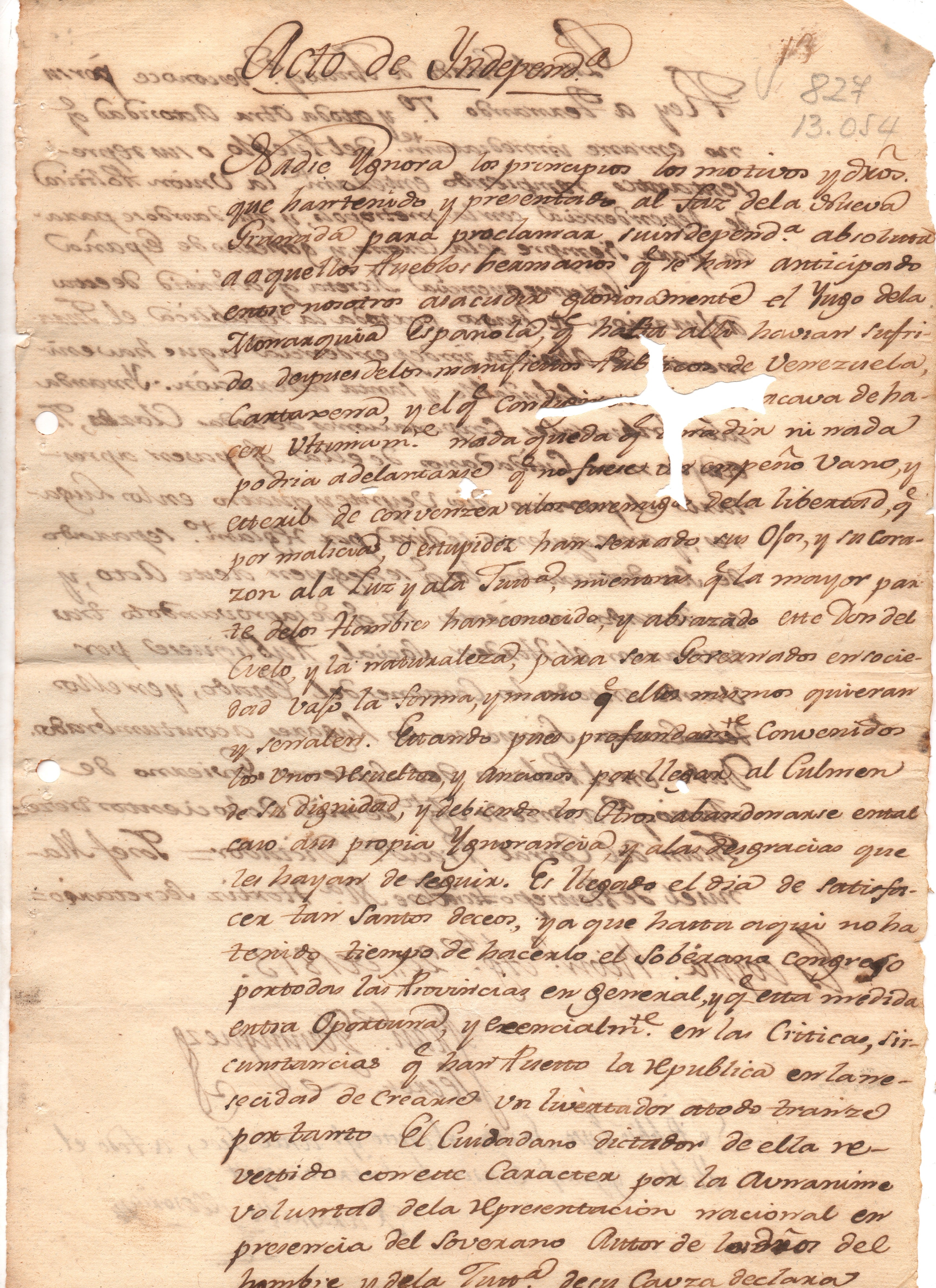 Copia certificada del Acto de Independencia de Antioquia, un manuscrito de 1813.