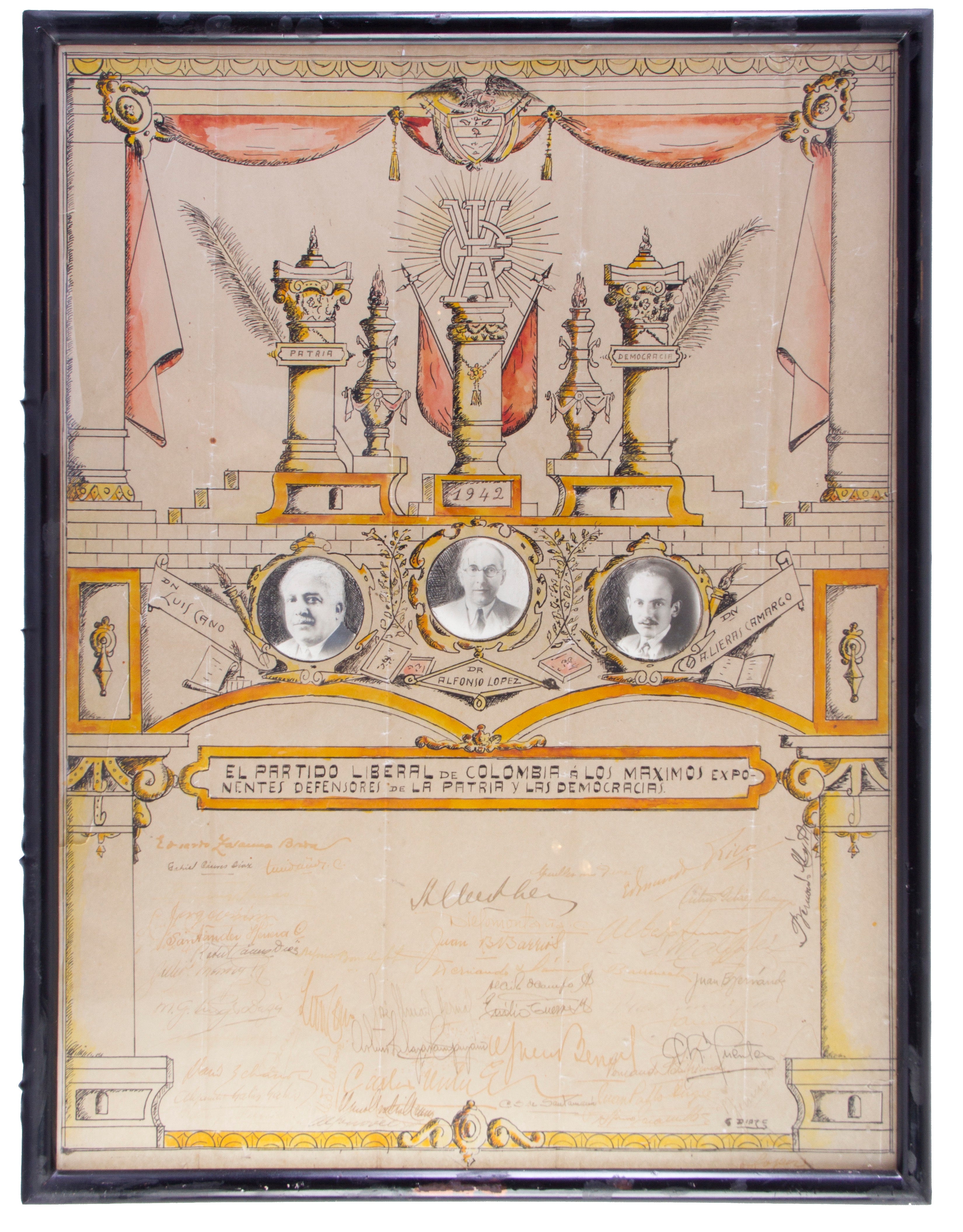Fiel liberal de apoyo a los dirigentes del Partido Liberal colombiano, firmado por unos 50 miembros.