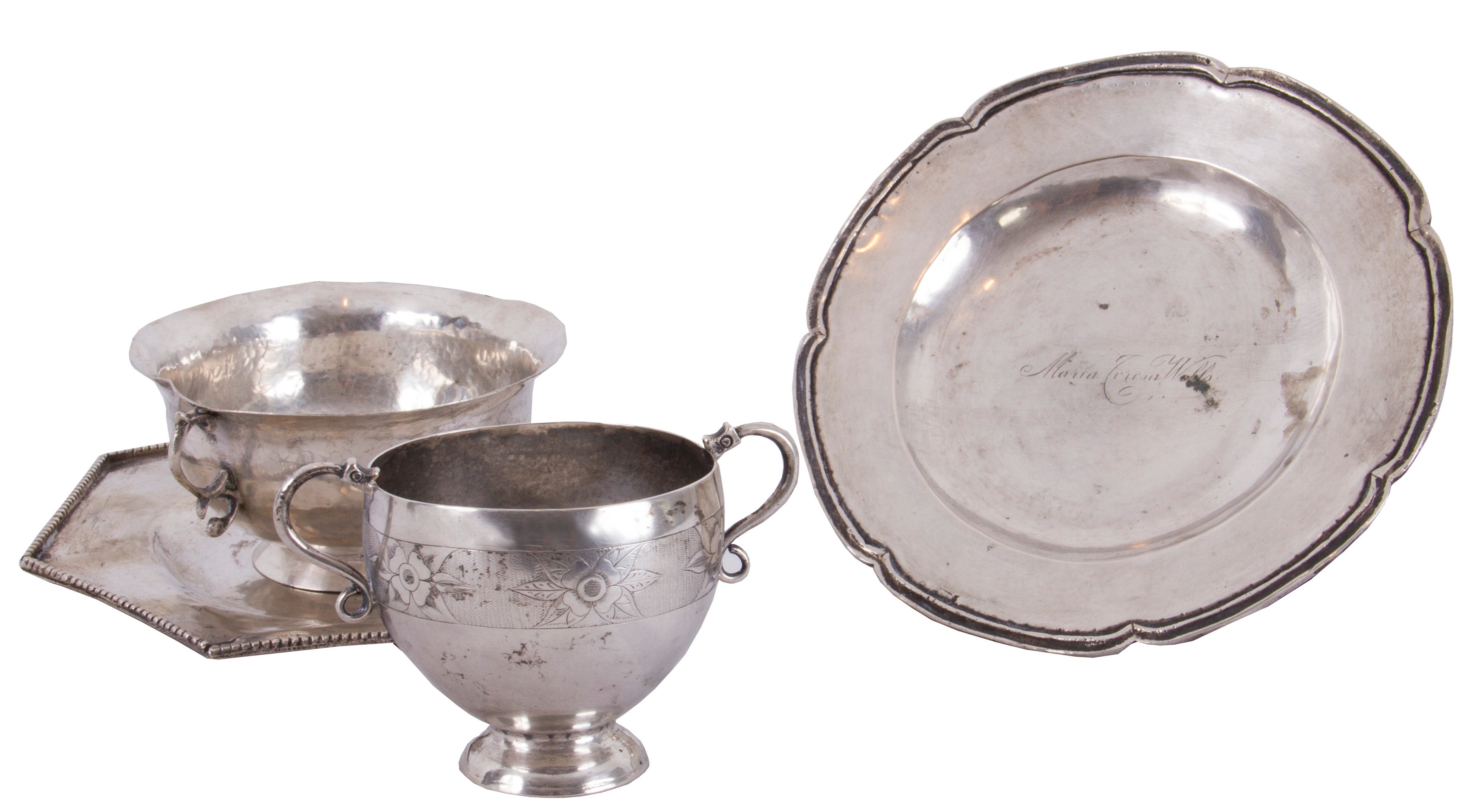 Tasas cinceladas y platillos, estos últimos marcados con ‘María Teresa Wills’.