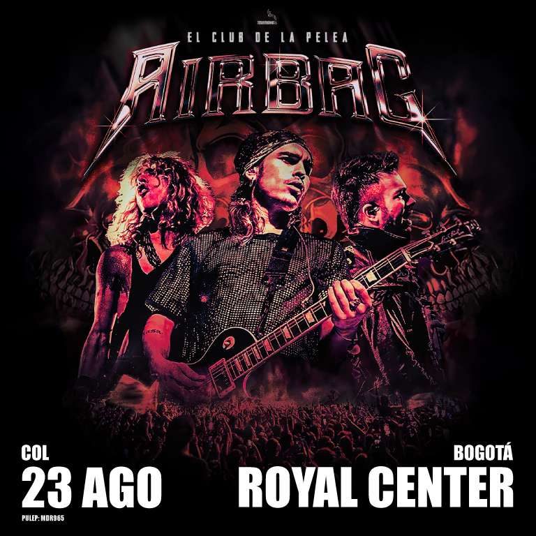 Airbag, banda emblema del rock argentino contemporáneo, ha construido una carrera sólida durante más de dos décadas y regresa a Bogotá para presentar El Club de la Pelea este 23 de agosto. La agrupación recorrerá sus éxitos como ‘Nunca lo olvides’ o ‘Amor de verano’ junto a los nuevos himnos que componen su último trabajo de estudio. Boletería en Ticketmaster.