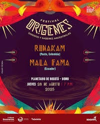 El próximo 28 de agosto, el domo del Planetario de Bogotá será escenario de un viaje musical de la mano de Mala Fama desde Ecuador y Runakam desde Pasto, en el marco del Festival Orígenes, un festival que le apuesta al sonido tradicional de las comunidades andinas que se conectan con la tecnología para brindar un viaje inmersivo por una noche. Entradas en TuBoleta.