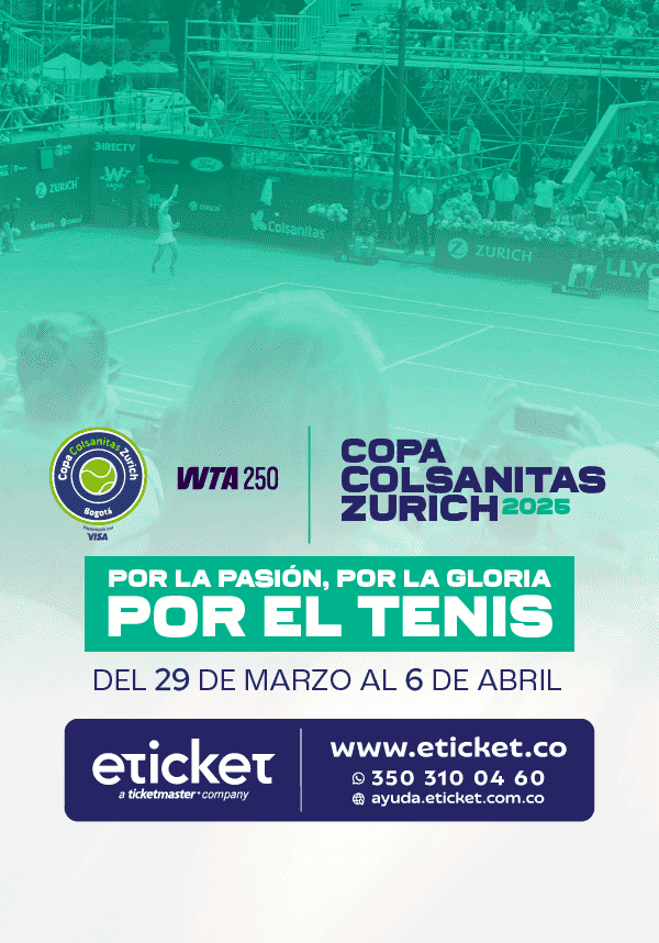 A partir del 29 de marzo llega a Bogotá la Copa Colsanitas Zurich 2025, un torneo profesional de tenis femenino que cuenta con la participación de 50 jugadoras de más de 12 países. Para esta edición, Camila Osorio, campeona vigente del certamen, dirá presente en la capital colombiana. Adquiera sus entradas a través de Eticket para disfrutar del mejor tenis femenino.