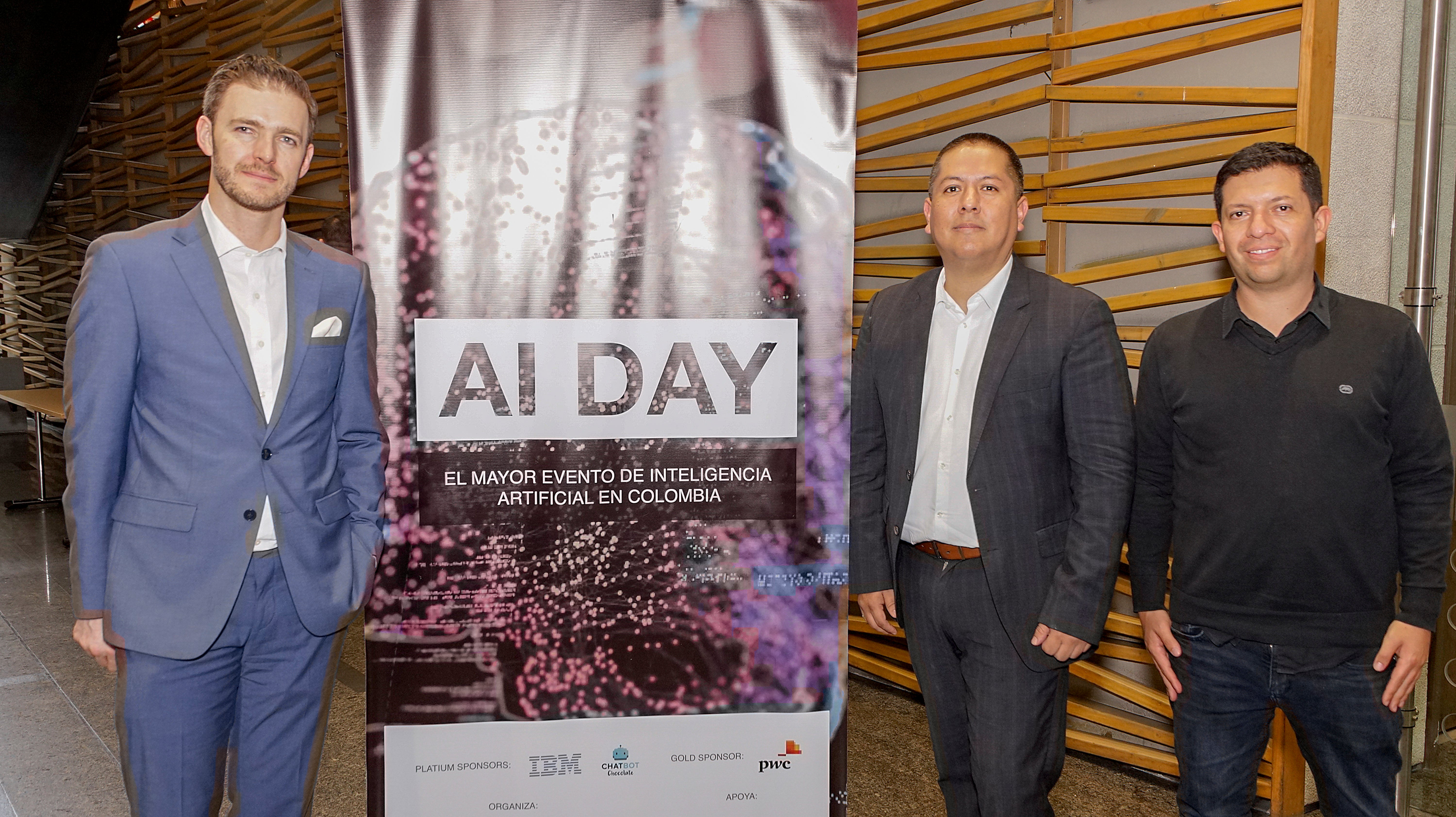 Daniel Sarmiento, gerente de Automatización de Procesos Inteligentes de PWC Colombia; Sergio Sotelo, Líder IBM Watson Data & AI; y Juan Camilo Nates, socio director Chatbot Chocolate en Colombia.