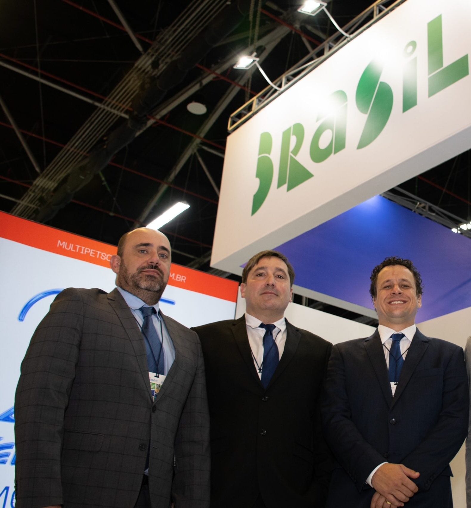 Marcius Souza, Álvaro Vivas y Thiago Cavalcante, representantes de Multiplet, durante la Feria Internacional de Bogotá.
