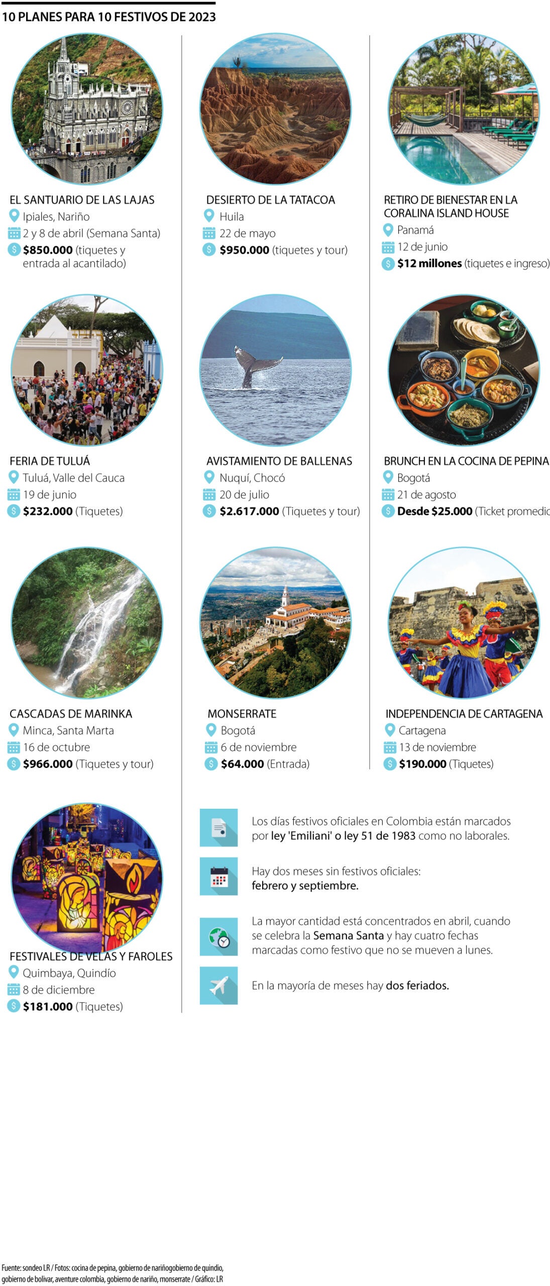 LR realizó una agenda con 10 planes para 10 festivos de los 17 que hay en total, en donde se incluyen paseos culturales, ferias, viajes y hasta brunches locales y temáticas. Aquí la agenda para los festivos de 2023.