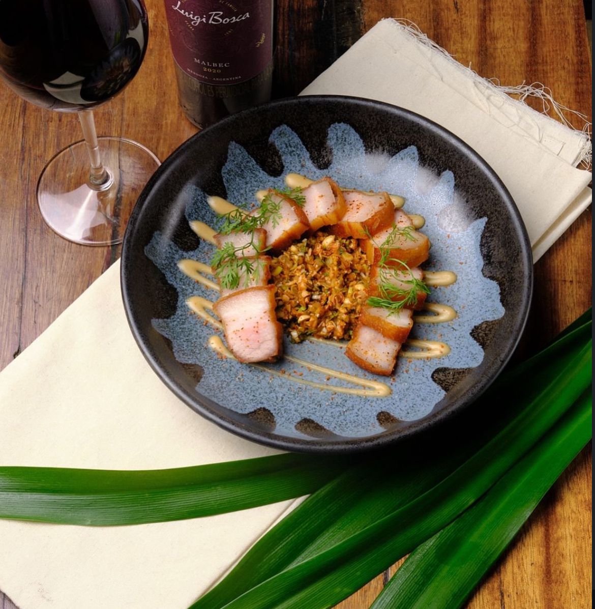 En las entradas, hay desde las típicas carimañolas, hasta albóndigas. Uno de los platos recomendados es una panceta de cerdo con ají y mayonesa de maní.