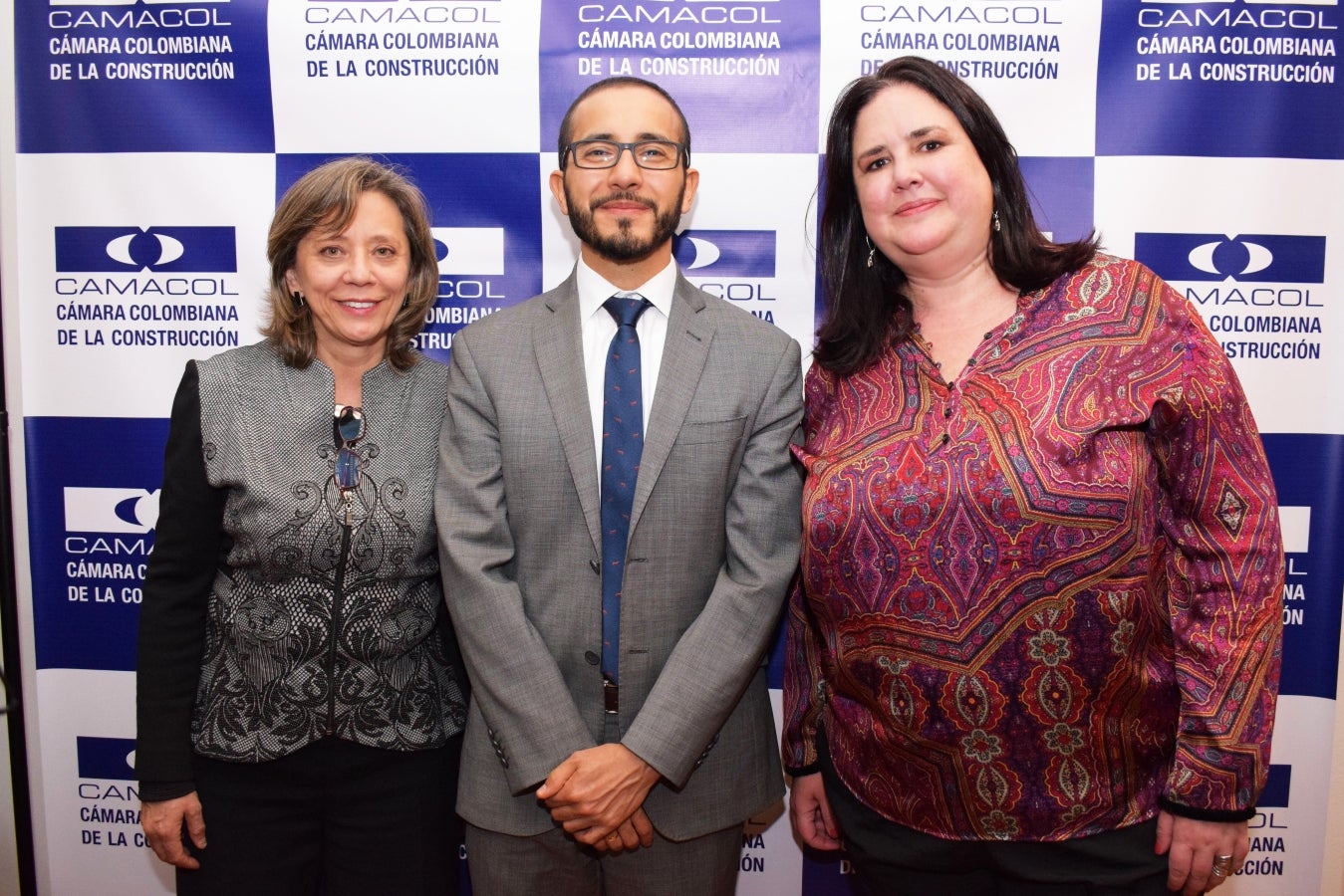 Rosa Ibel Pinzón Quintero, directora de Productos & Servicios de Camacol; Edwin Chiriví, vicepresidente de Desarrollo Sectorial; y Victoria Cunningham, directora de Productividad y Sostenibilidad.