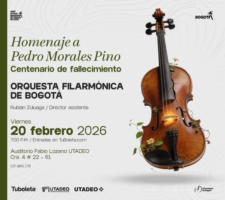 Bajo la dirección de Rubián Zuluaga, la Orquesta Filarmónica de Bogotá conmemorará a Pedro Morales Pino, considerado el padre de la música colombiana, en el auditorio Fabio Lozano de la Universidad Jorge Tadeo Lozano. Un espacio para hacer memoria a través de nuestra música. Se realizará el 20 de febrero, a partir de las 7:00 p.m. Entradas: Tuboleta.