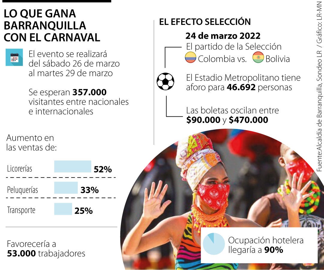 Con el panorama de años anteriores y de la última versión presencial en 2020, la estimación de la ciudad es que solo el Carnaval le represente más de $400.000 millones entre comercio y turismo, con una ocupación hotelera superior a 90%.