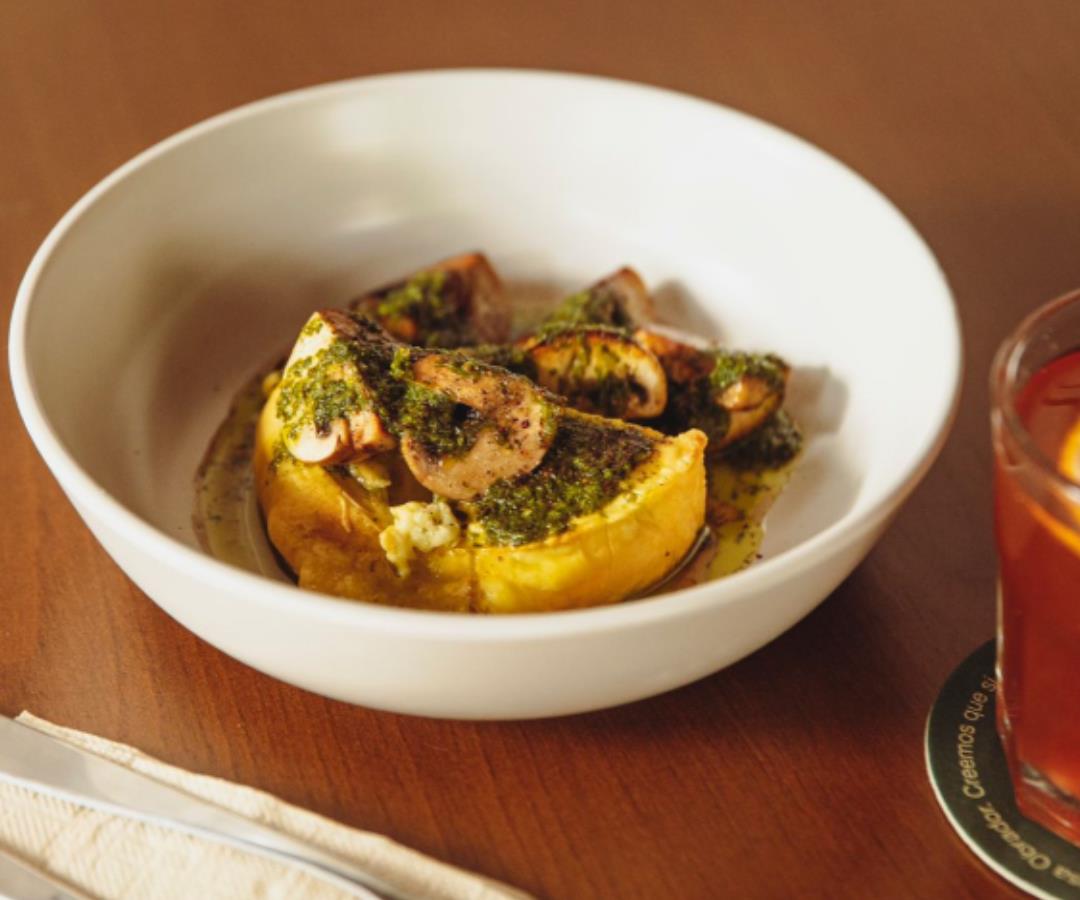 Uno de los platos recomendados por los fundadores es su queso paipa sellado, acompañado de gremolata de cilantro y hongos. La elección perfecta para los amantes del queso, permite un buen maridaje con los vinos de casa.