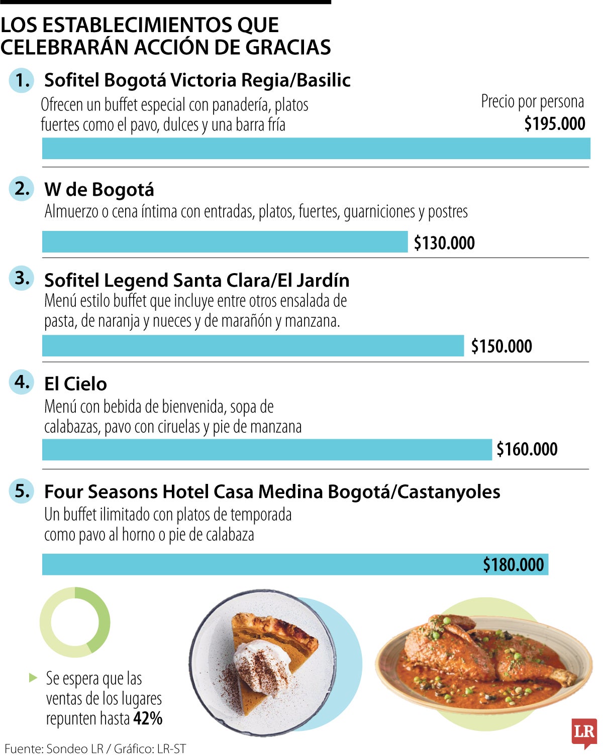 El restaurante El Cielo, en Medellín; los hoteles Sofitel en Bogotá y Cartagena; el W Bogotá y el Four Seasons en Bogotá son los lugares con planes especiales para celebrar Acción de Gracias.