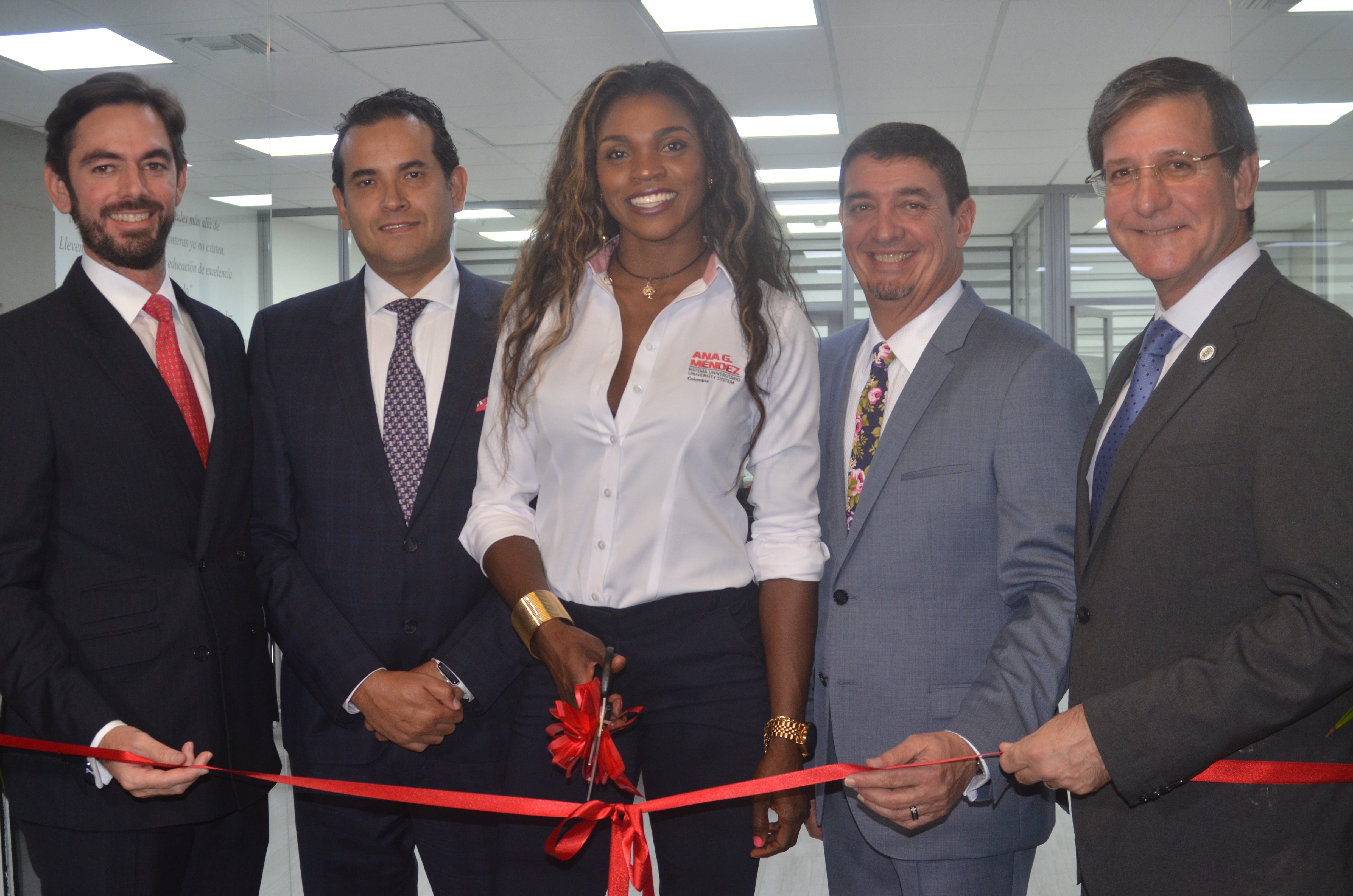 Se realizó el evento de la llegada del Sistema Universitario Ana G. Méndez en presencia de Rafael Nadal B., vp. Asuntos Internacionales de Suagm; Andrés Vásquez, dir. ejecutivo para Colombia; Caterine Ibargüen, ex alumna; José Méndez y Luis Rivera.