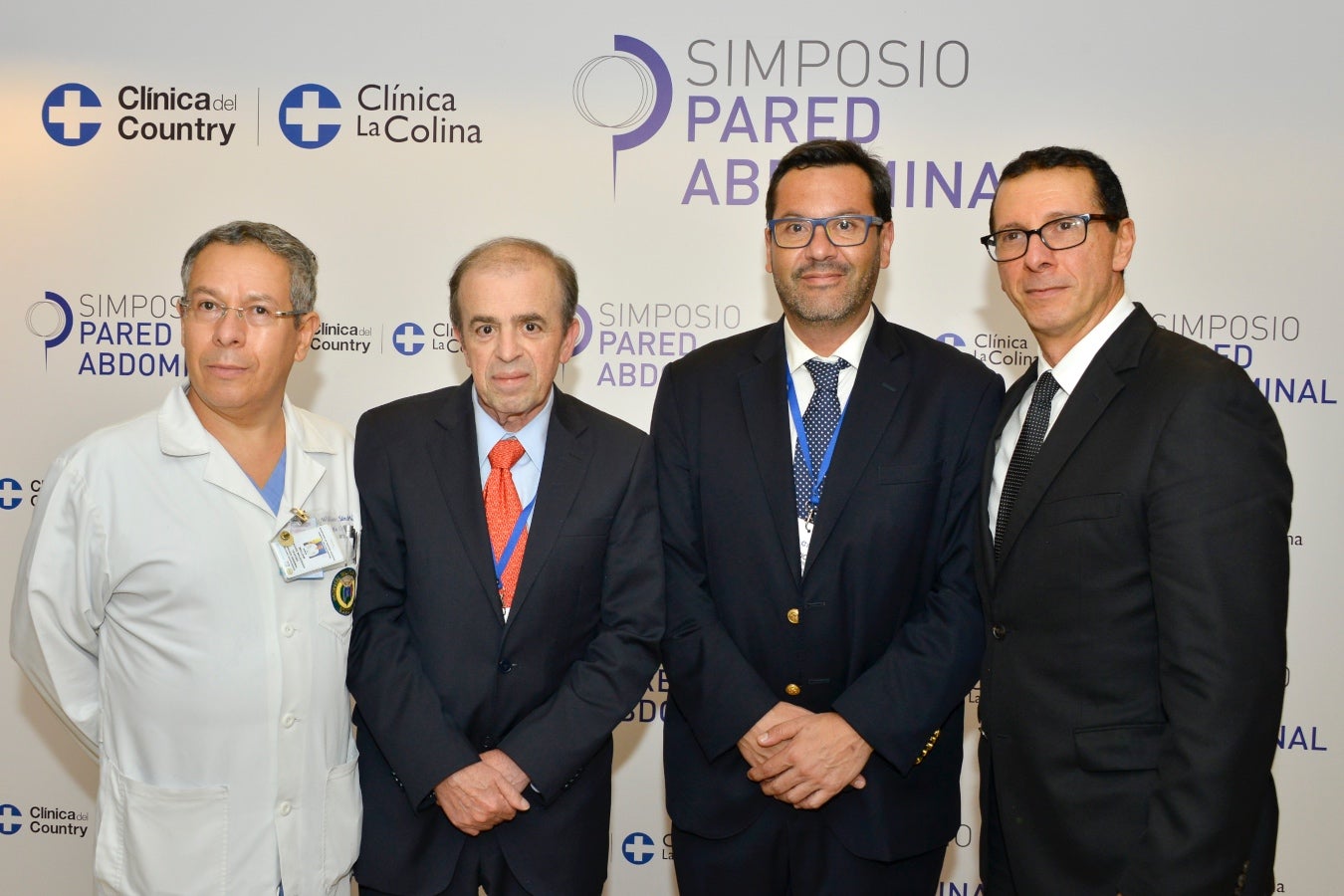 William Sánchez, presidente ACS Colombian Chapter; Jorge Ospina, vicepresidente médico de la Clínica del Country y Clínica La Colina; Mauricio Basto, jefe de cirugía de la Clínica del Country y Clínica La Colina; y Jorge Daes, presidente Asociación Colombiana de Cirugía.
