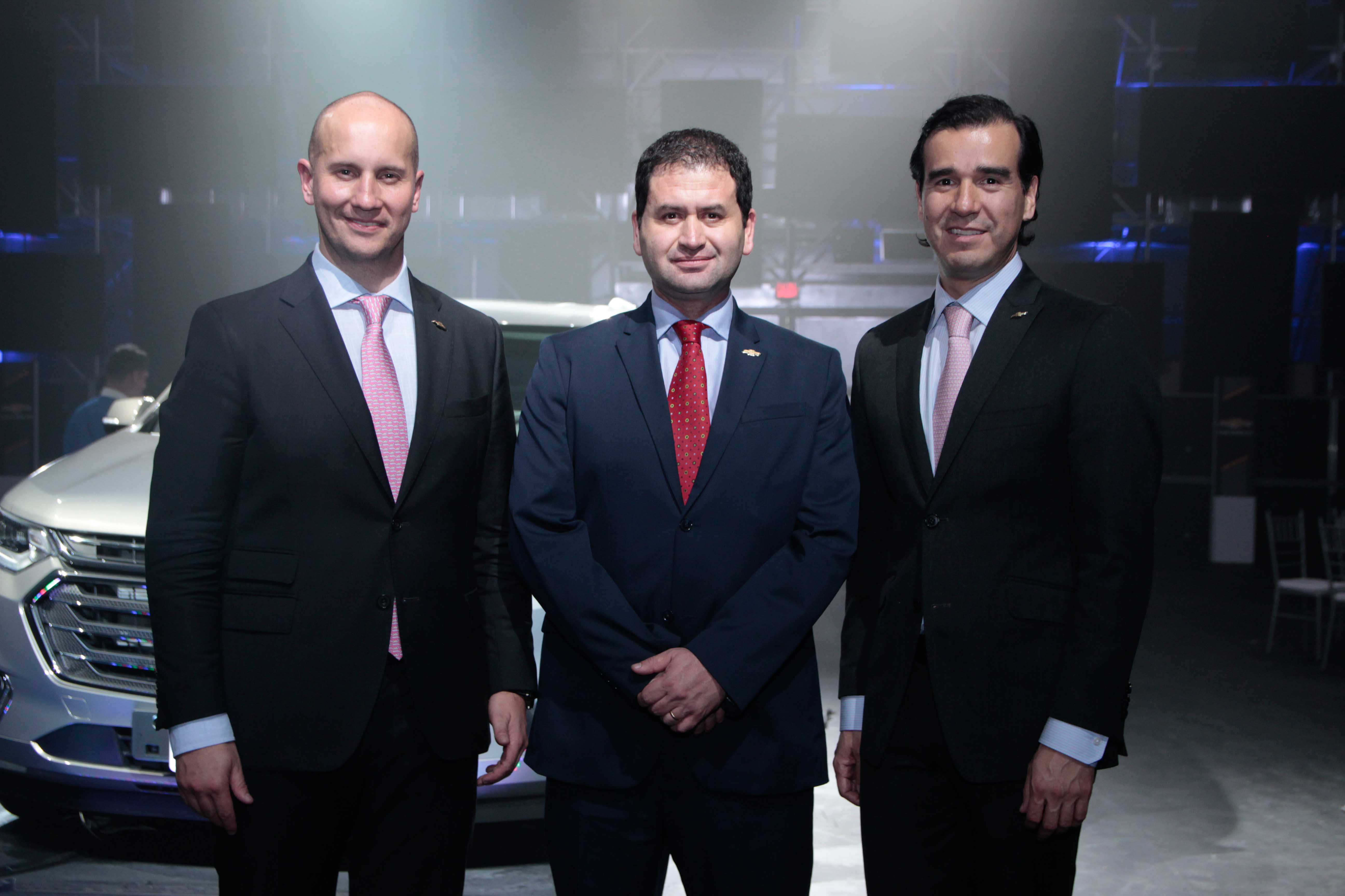 Camilo Ruíz, gerente de Mercadeo y Producto de Chevrolet; Fernando Agudelo, presidente de General Motors Suramérica Oeste; y Jaime Gil, vicepresidente de Mercadeo de Chevrolet.