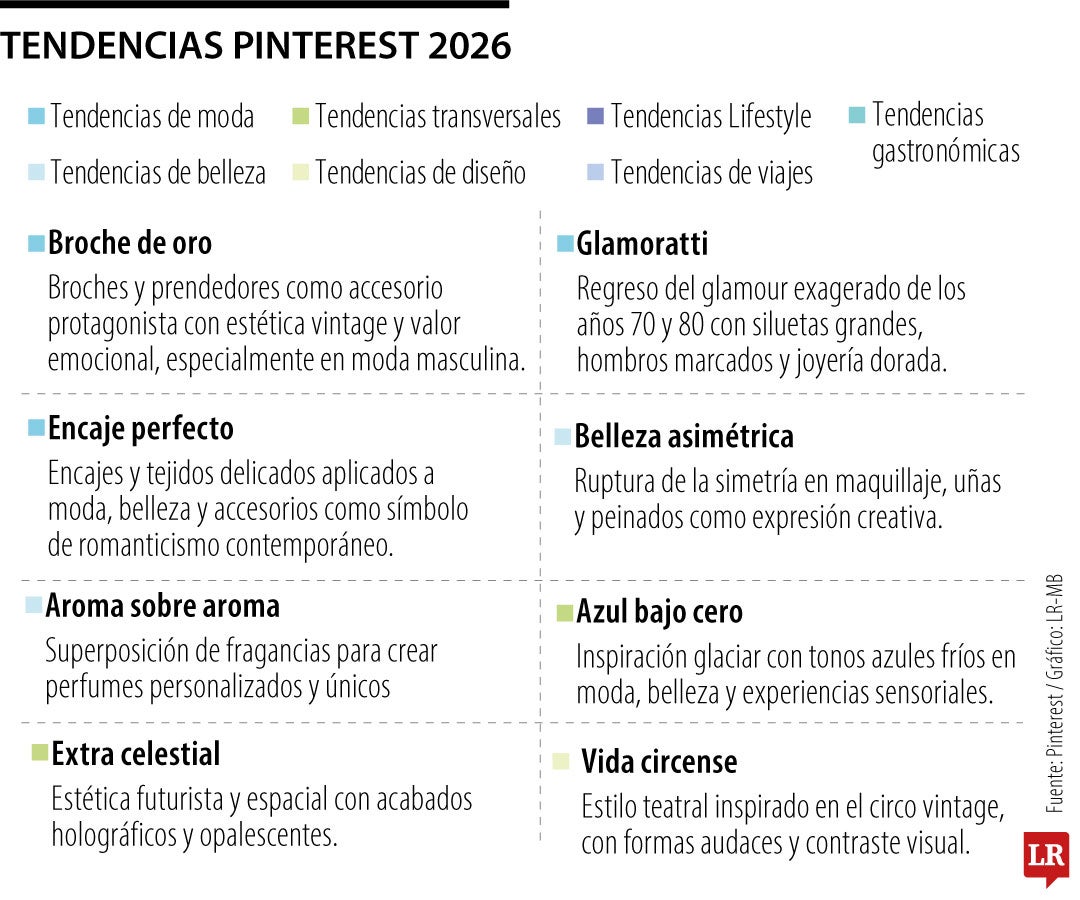 Broches protagonistas, glamour exagerado, romance imperfecto y siluetas de poder marcan las principales predicciones de Pinterest sobre cómo se vestirá el 2026.