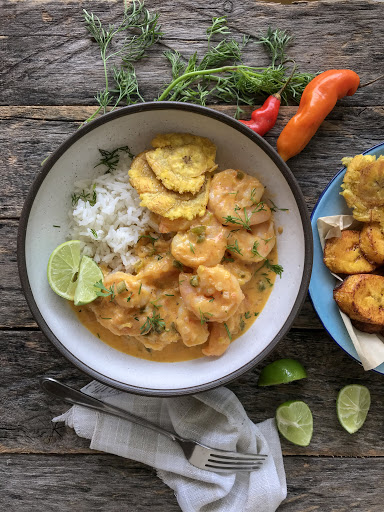 Para hacerlo, en una sartén con aceite, ponga a sofreír el ajo, agregue los camarones y el pescado en cubos previamente pasados por harina, sal y pimienta. Cuando estén dorados retire y reserve en un plato aparte; en la misma sartén incorpore las cebollas, posteriormente, el pimentón y el tomate sin piel. Agregue el comino y empiece a desglasar con el vino blanco. Cuando el alcohol del vino se haya evaporado, añada el agua y la leche de coco. Adicione el achiote, o en su defecto, el color. Finalice con la albahaca fresca y el cilantro y deje reducir. Rectifique la sal y vierta nuevamente el pescado y los camarones en la sartén. Deje por un minuto más en el fuego y listo el Encocado de pescado y camarones para disfrutar en familia.