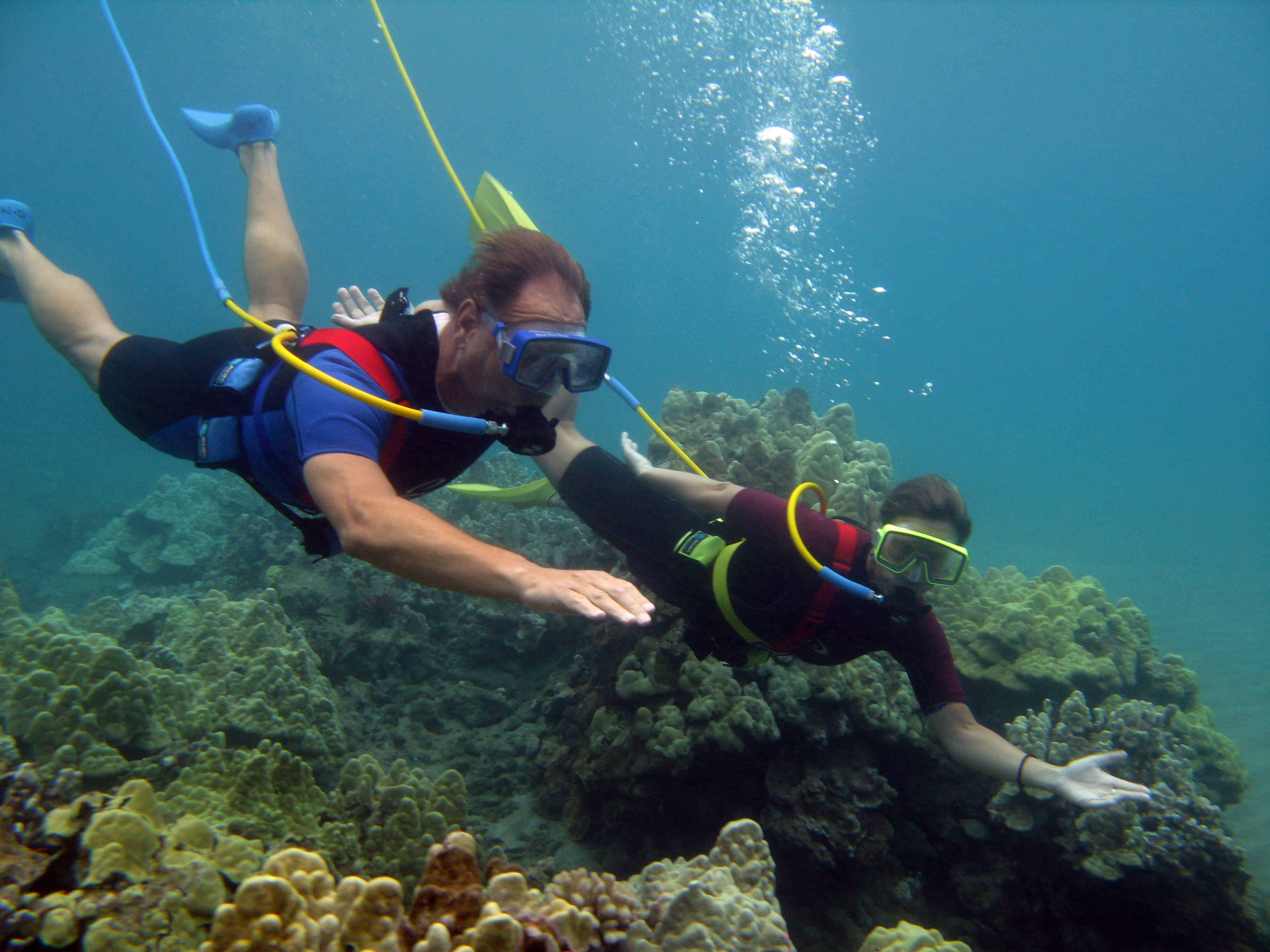 Por 40 minutos y sumergidos cerca de tres metros, los mayores de 10 años podrán disfrutar de un tour guiado en un acuario natural en San Andrés, mientras reciben oxígeno por medio de unas mangueras conectadas a tanques de aire comprimido en la superficie. El servicio lo ofrece Omnitours, por un valor de $53.050 por persona. Este precio incluye una sesión teórica, una sesión en el mar, el equipo de snuba y el acompañamiento de un instructor guía. La actividad se realiza todos los días en el Hotel Blue Cove.