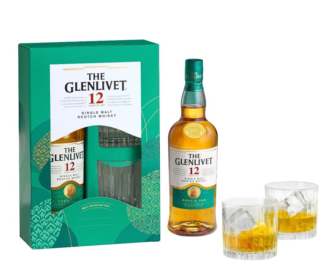 The Glenlivet 12 años se une a las celebraciones de fin de año con un envoltorio especial que, además de tener una botella de su tradicional whisky escocés, tiene dos vasos de vidrio, perfectos para brindar. La bebida es elaborada por una de las marcas más representativas de las tierras altas de Speyside al norte de Escocia, preparada de forma artesanal, con alambiques de cobre y agua, y se puede tomar sola o en coctel.