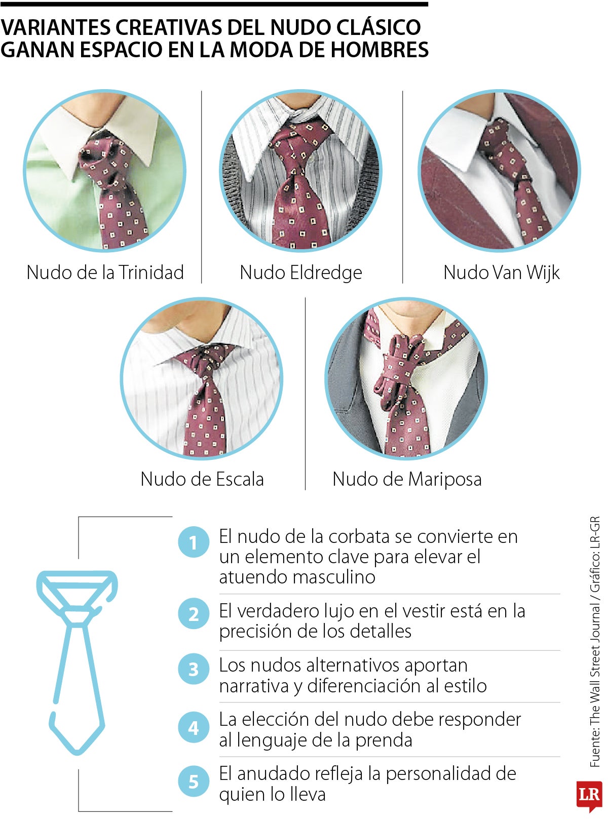 Elevar un atuendo en temporada de fin de año no siempre exige nuevas adquisiciones; muchas veces basta con reexaminar los elementos clásicos de la vestimenta masculina para descubrir oportunidades de estilo que pasan desapercibidas. Una de esas oportunidades es el nudo de la corbata, para la cual se recomienda explorar nuevos nudos: trinidad, Eldredge, Van Wijk, de escala y mariposa.