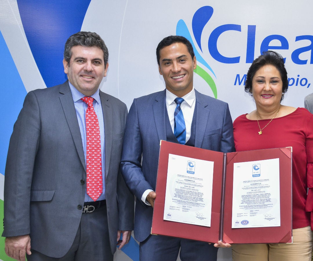 En la entrega también participaron Juan Felipe Mora, director regional de Icontec; Julián Andrés Restrepo, presidente de Cleaner y Amalfi Solarte, auditora de la misma compañía.