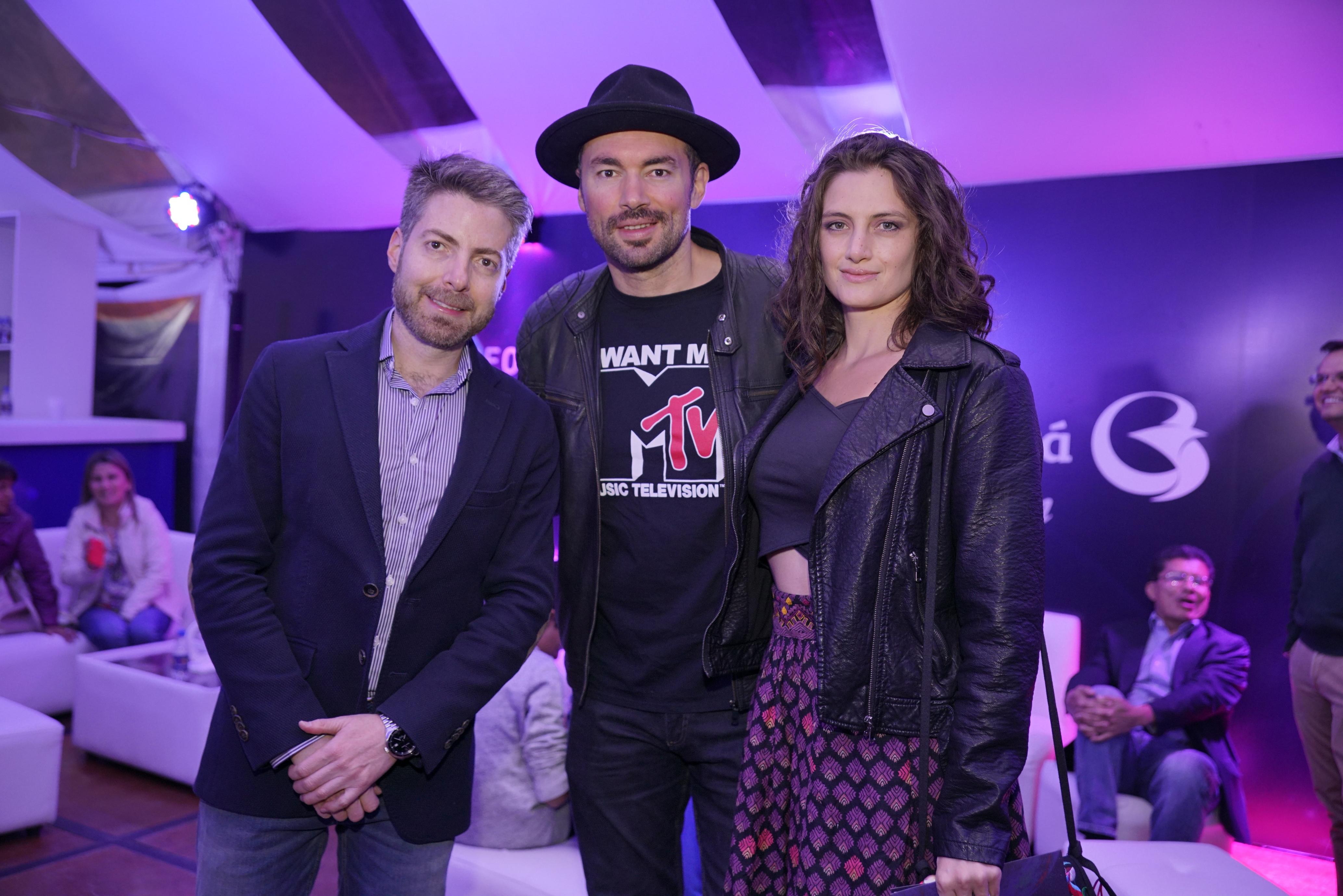 José Manuel Ayerbe, vicepresidente de Mercadeo del Grupo Aval; en compañía de Santiago Cruz y María Paz Mateus durante el coctel que ofrecieron Grupo Aval y Banco de Bogotá en el marco de la presentación del Cirque du Soleil.