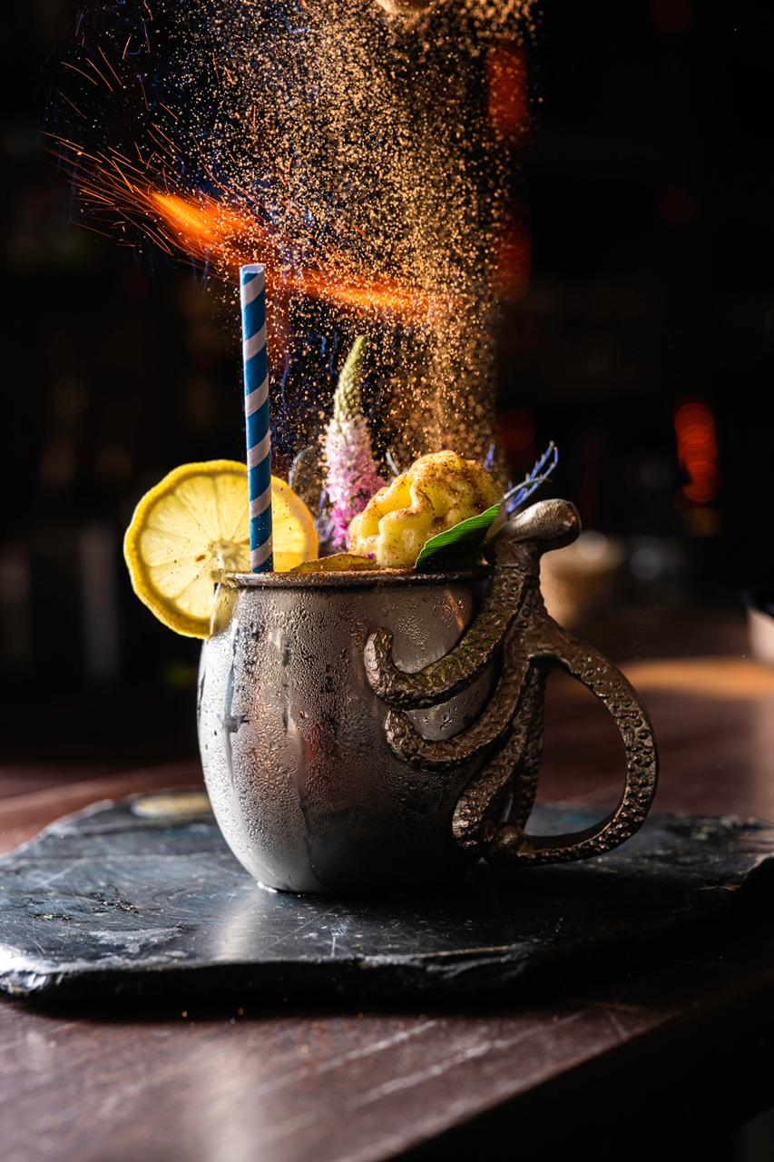El espacio al norte de la ciudad, que está ubicado en un pequeño ambiente que se decora con estantes llenos de vinos de todo tipo de sitios, tiene una carta de coctelería en la que pretende hacer un recorrido por la historia, tanto por los mitos que hay en el mar, (por lo que completa su carta, con gastronomía de este tipo), y hasta presentaciones que buscan llevar a la personas a las anécdotas detrás de temas como el popular Galeón San José.