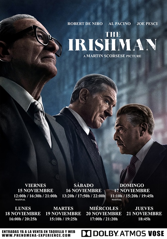 Esta película de la leyenda del cine Martin Scorsese retrata la historia de Frank Sheeran, un sicario que trabajó con un poderoso grupo de mafiosos y estuvo bajo las órdenes de Jimmy Hoffa, uno de los líderes sindicalistas más conocidos en EE.UU. Disponible en Netflix.