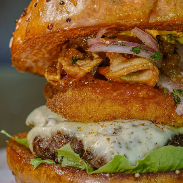Dentro de las más votadas en Bucaramanga también encontramos a Rudo Cocina Irreverente y su hamburguesa con 150 gramos de carne angus, mayonesa aioli de trufa negra para un toque umami y una ligera crema de queso ricotta y queso crema.