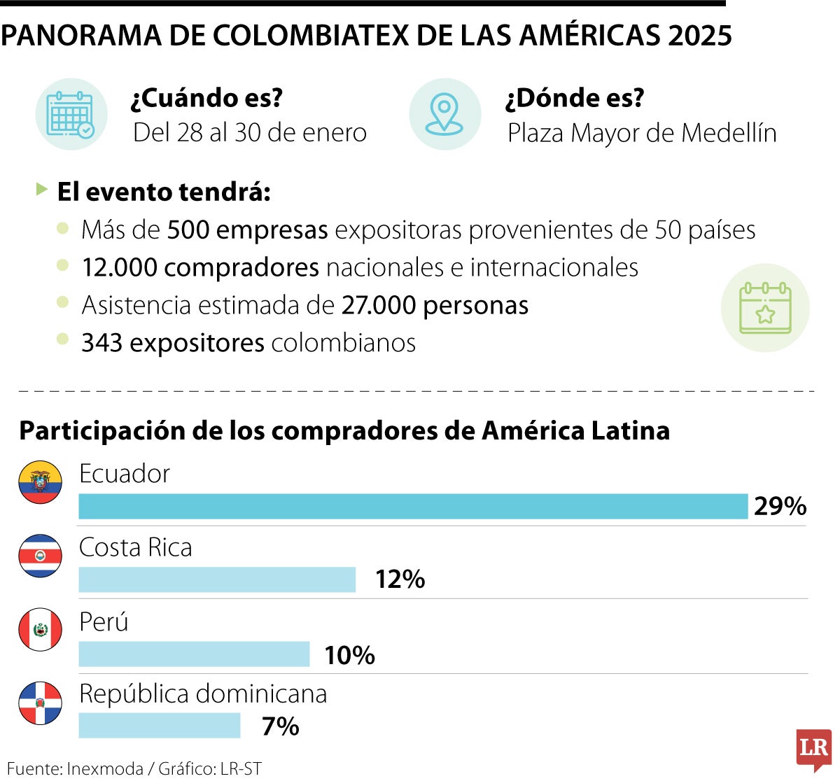 En el evento de presentación se anunció que Colombiatex de las Américas 2025 contará con la participación de más de 500 empresas expositoras provenientes de 50 países, así como 12.000 compradores nacionales e internacionales y una asistencia estimada de 27.000 personas.