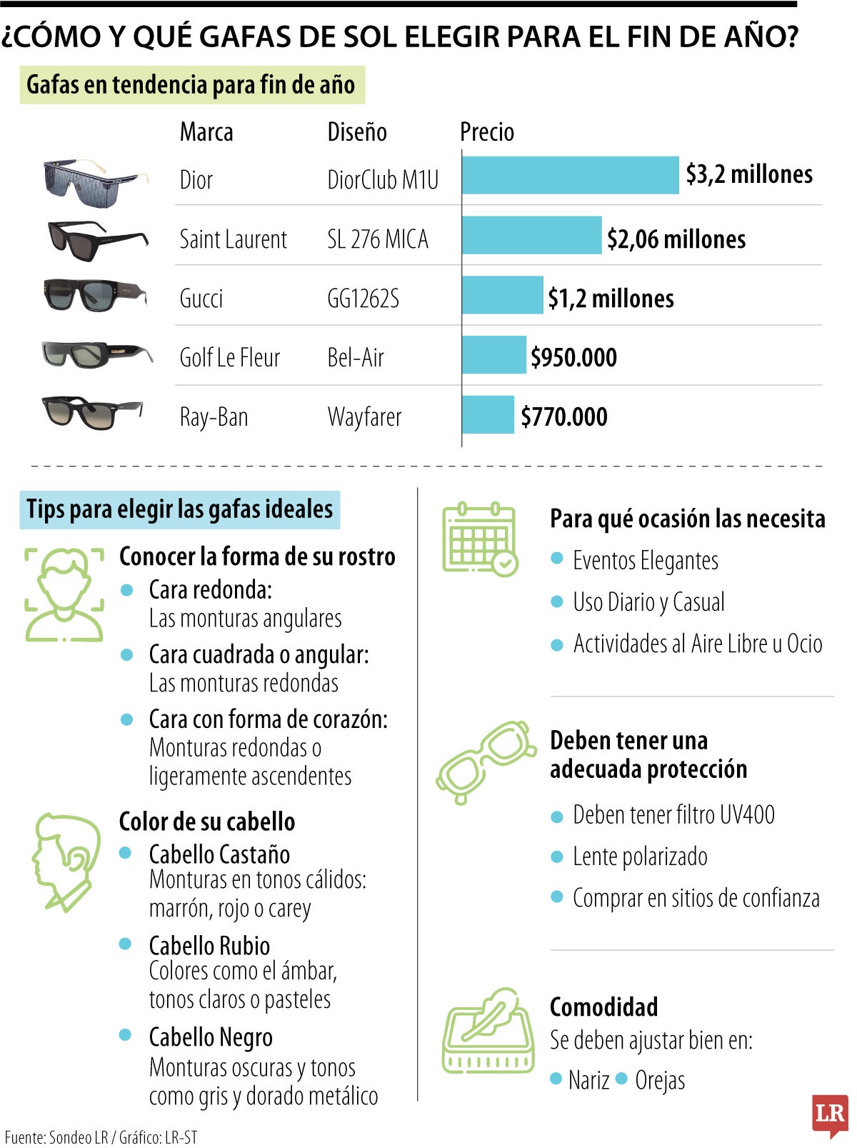 Cuando las lluvias den tregua e inicie la temporada de fin de año, uno de los accesorios que entran en furor son las gafas. Conozca tendencias y tips para seleccionarlas según los expertos