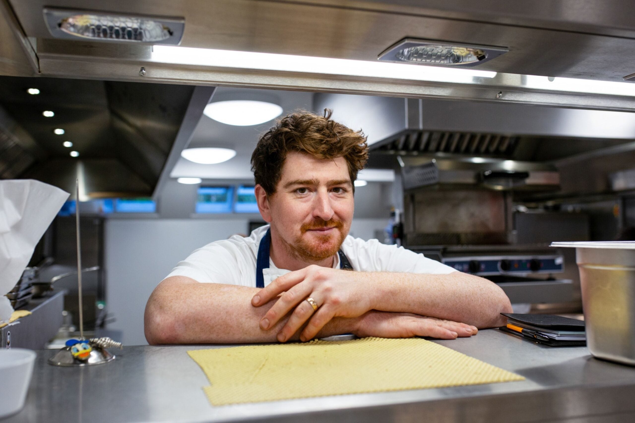 Uno de los primeros platos que se servirán será una reinvención del tattie scone, una tortita de pan y papa que se encuentra comúnmente en los buffets de hoteles baratos. Es duro como un disco olímpico y empapado en aceite, bueno para aliviar la resaca y provocar un ataque al corazón. Aquí se eleva a un bocado esponjoso al estilo de un bollo bao que parece un bono de encendido en un videojuego. Está relleno con mayonesa cremosa de yema de huevo y cubierto con una cucharada de caviar y una rodaja de wagyu crudo.