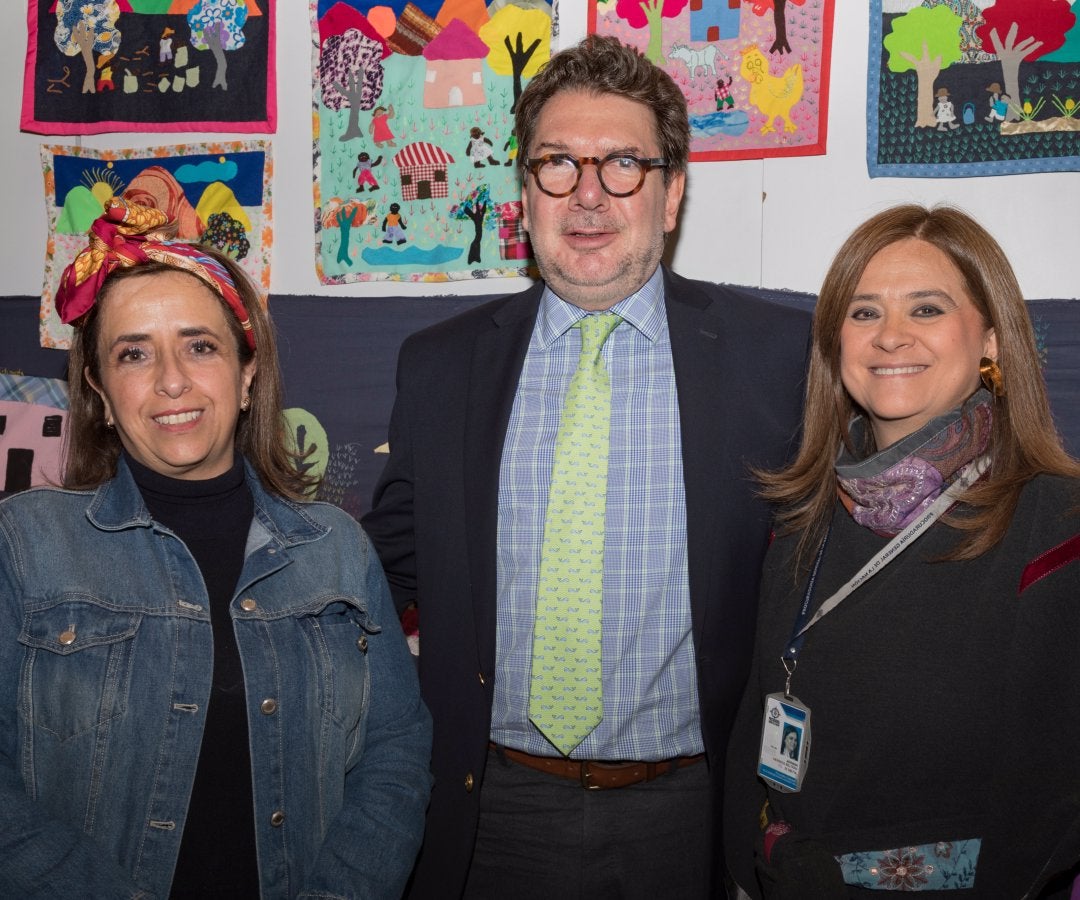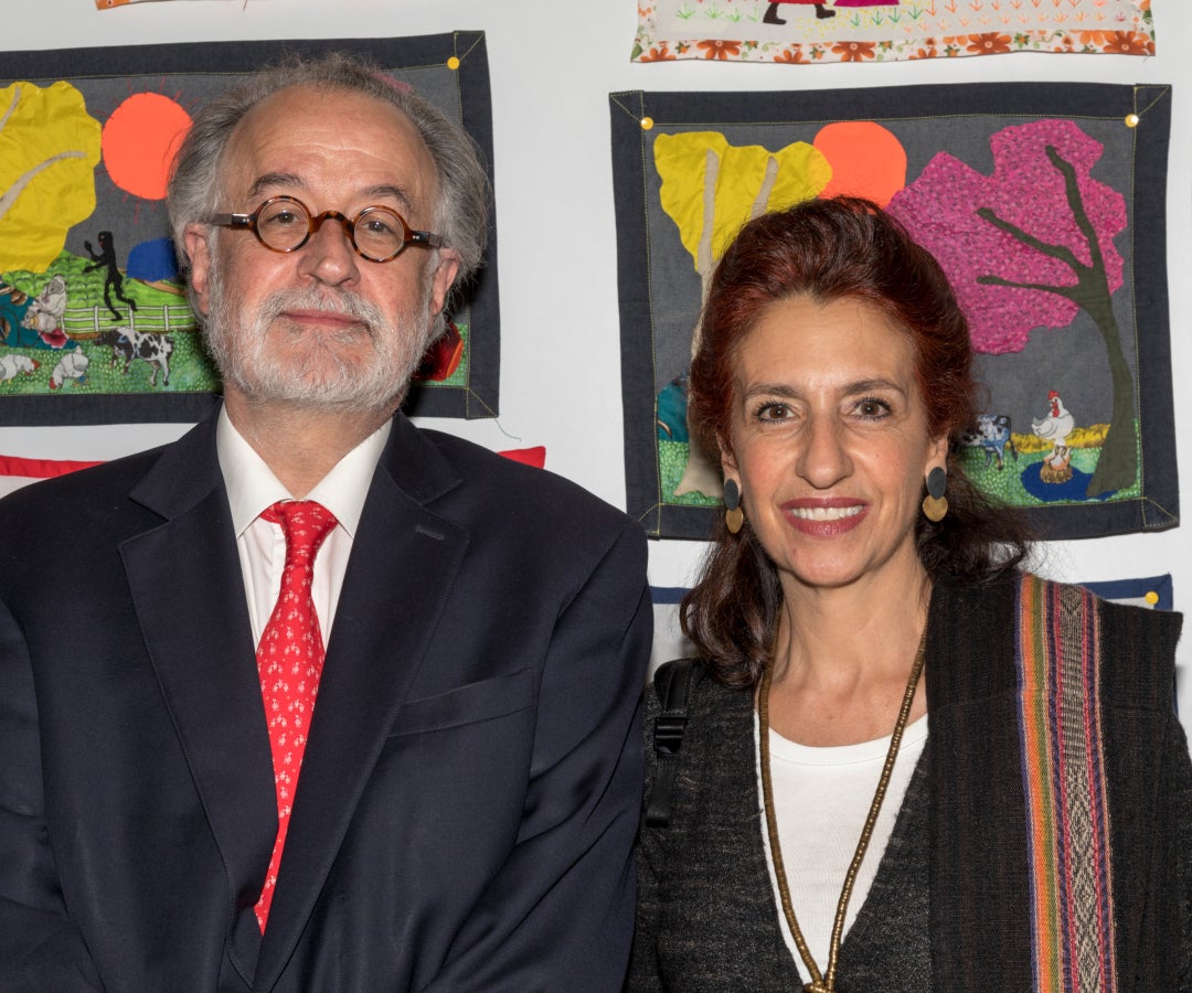 Pedro Alejo Gómez, director Casa de Poesía Silva, y Claudia Hakim, directora del Museo de Arte Moderno de Bogotá, también participaron en la exposición de las tejedoras de Mampuján.