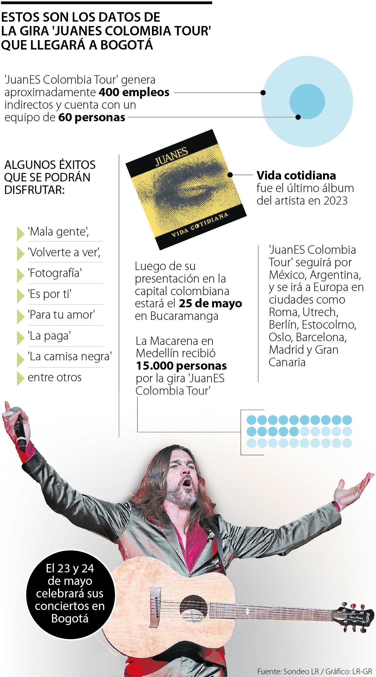 Juanes hace alrededor de 100 shows al año y esta gira surgió luego de sus presentaciones en el Festival Cordillera y Rock al Parque.