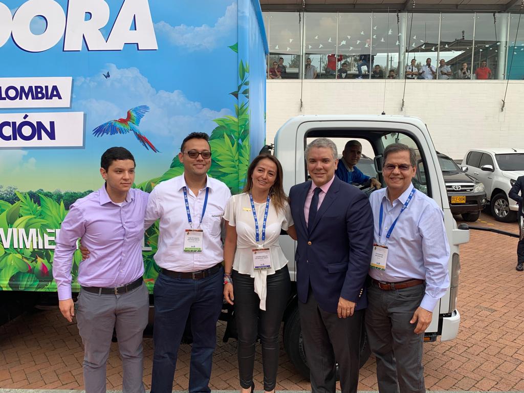 David Tangarife, jefe de mantenimiento de Coordinadora; Carlos Grateron, director Técnico Fedebiocombustibles; Carolina Betancourt, marketing BioD; Iván Duque, presidente de Colombia; Tito Salcedo, presidente de BioD.