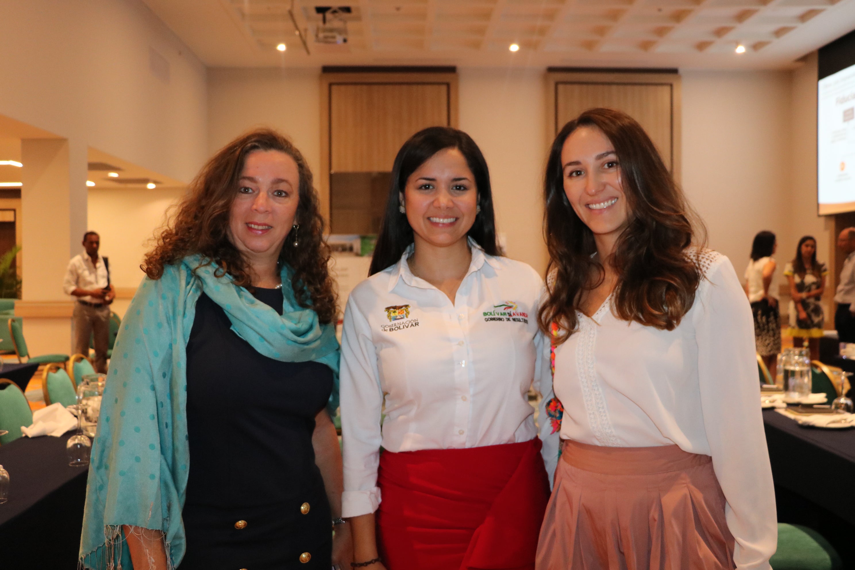 Ivonne Scaff, especialista de sostenibilidad y nuevos negocios de Findeter; Mary Claudia Sánchez, asesora del despacho de la Gobernación de Bolívar; Mariana Llano, profesional de la gerencia de sostenibilidad y nuevos negocios de Findeter.