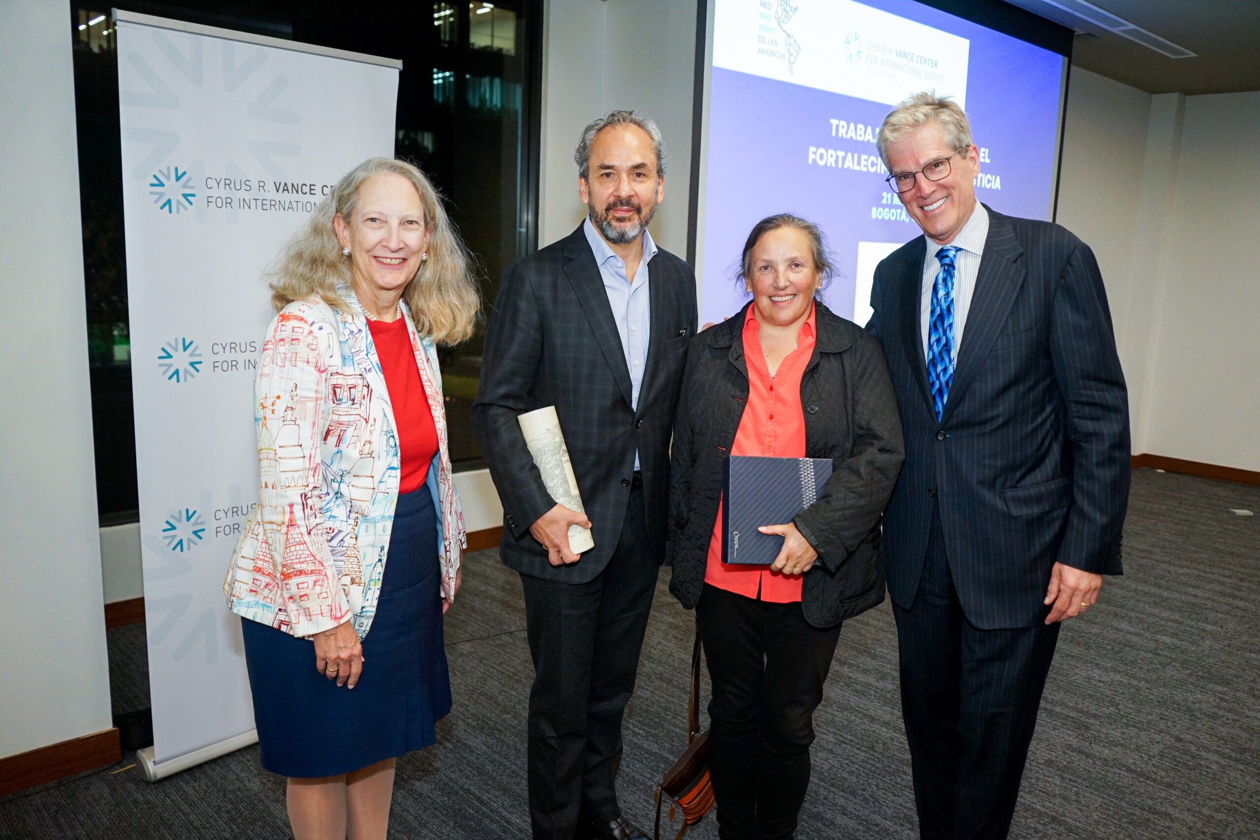 Foto: Antonia Stolper; Jaime Trujillo, socio de Baker McKenzie; Paula Samper, del Consejo Directivo de Probono; y Ted Maynard, Pres. del Comité Ejecutivo del Vance Center.