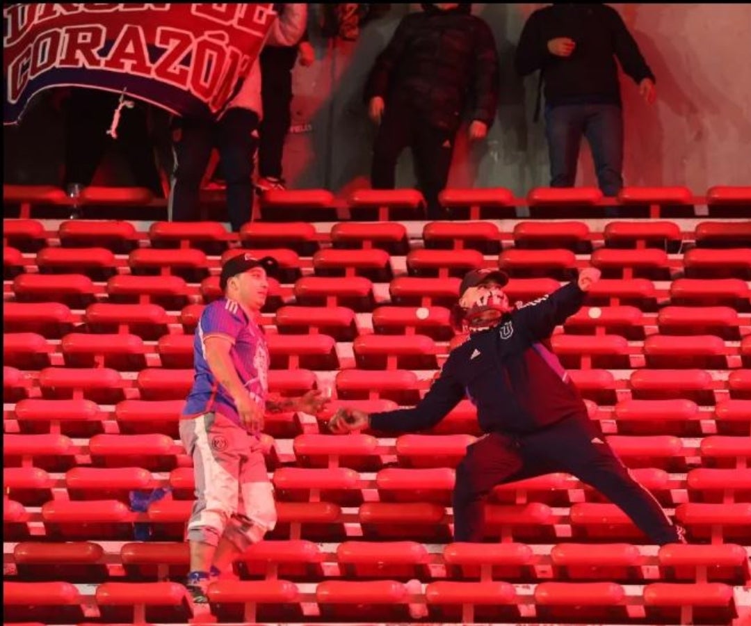 Durante el partido, aficionados del equipo chileno arrojaron objetos a la hinchada local, que reaccionó ingresando al sector visitante para golpearlos