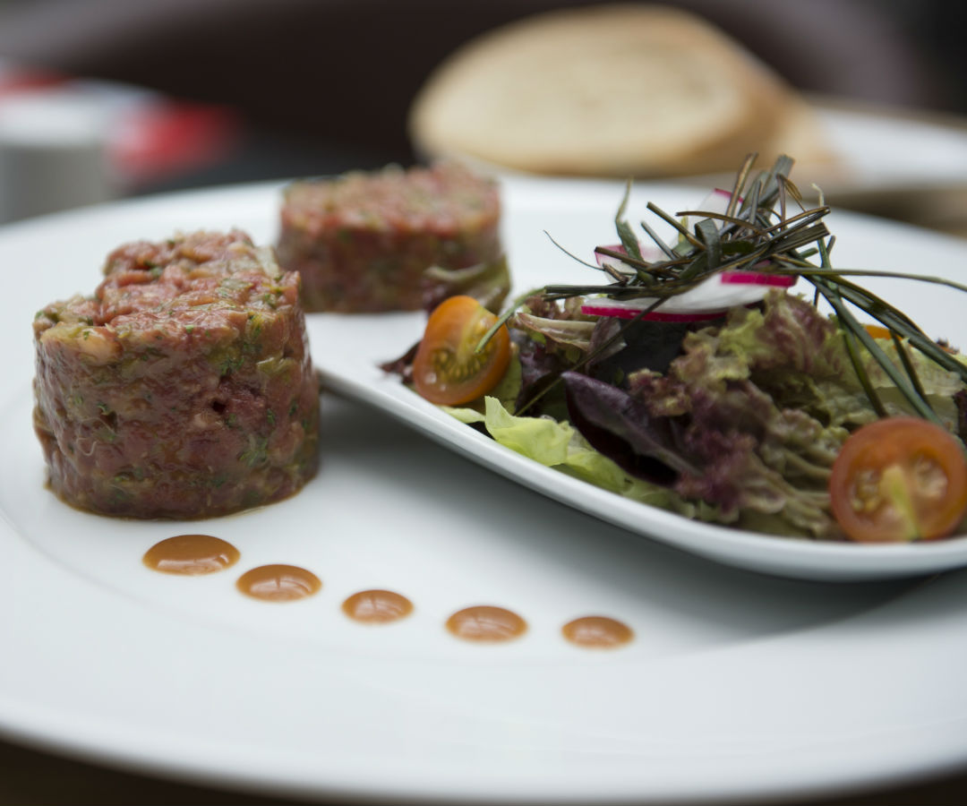 Es carne cruda picada, aderezada con salsa tartare. En La Boucherie está acompañada con papas a la francesa. También es común encontrarla servida con cebolla picada, alcaparras y diversos ingredientes de acuerdo a la preferencia del cliente.
